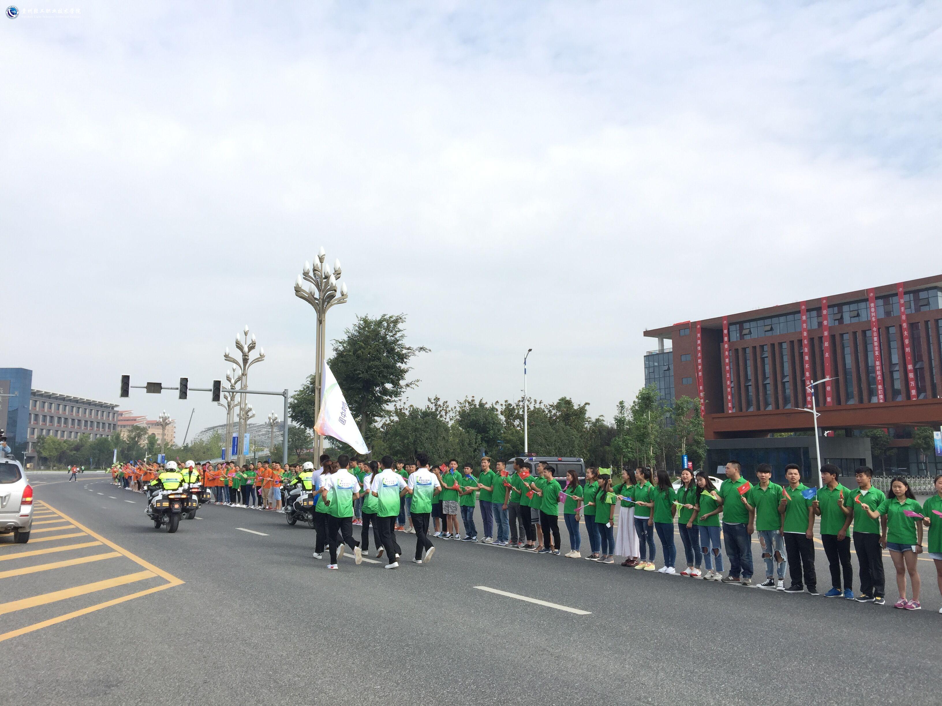 2016年9月12日上午,我院组织了各系共200名学生志愿者作为观众参与了此次的巡回接力活动。同学们穿着学院统一发放的志愿者服,手里挥动着五彩缤纷的校旗迎接我院旗手,志愿者们为巡回接力活动增添了一道亮丽的风景。