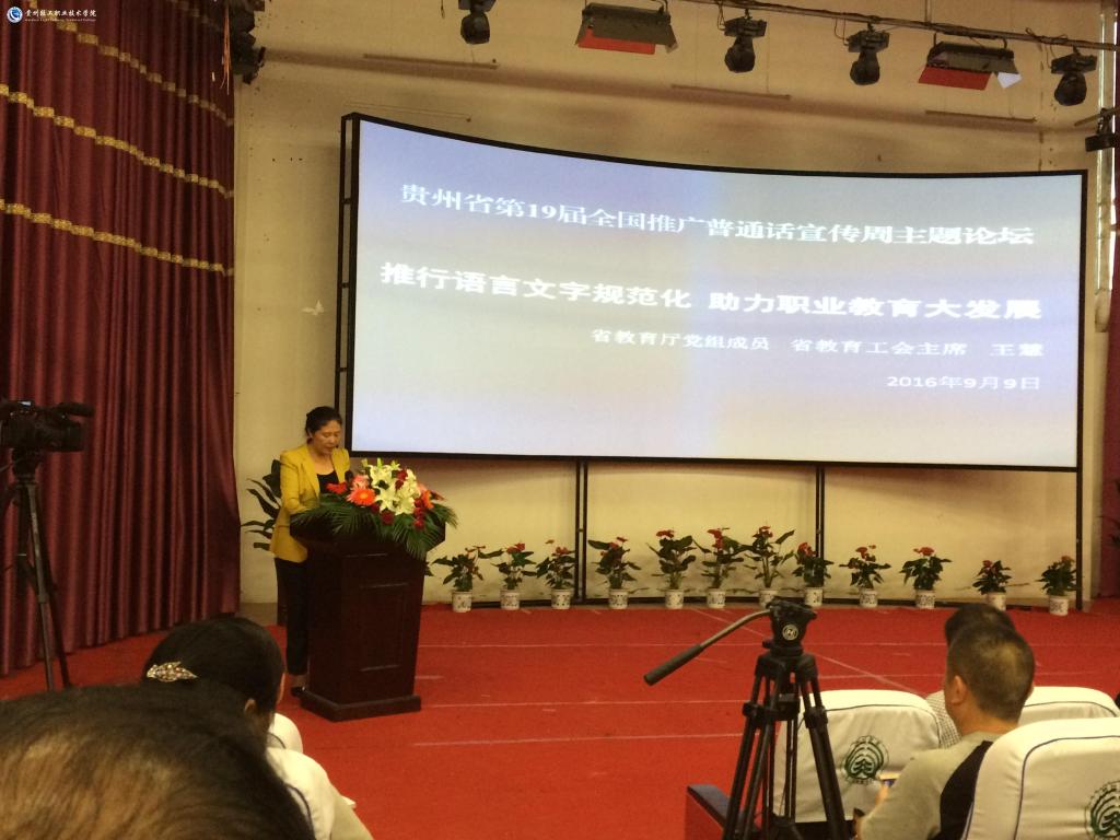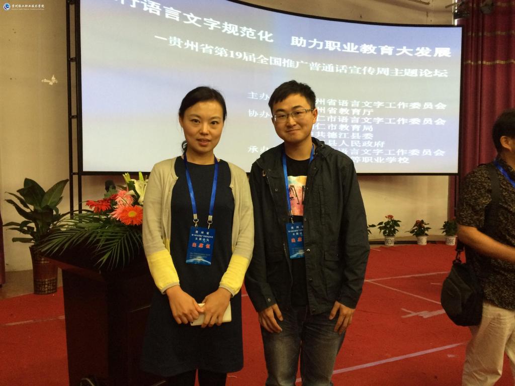 为推行语言文字规范化、助力职业教育大发展,贵州省第19届全国推广普通话宣传周主题论坛于2016年9月9日在贵州省铜仁市德江县中等职业技术学校召开。人文社科系副主任杨丽彦、机电工程系教师杨学易一行应邀参加了会议。会议由省语委办副主任许晓洲同志主持。