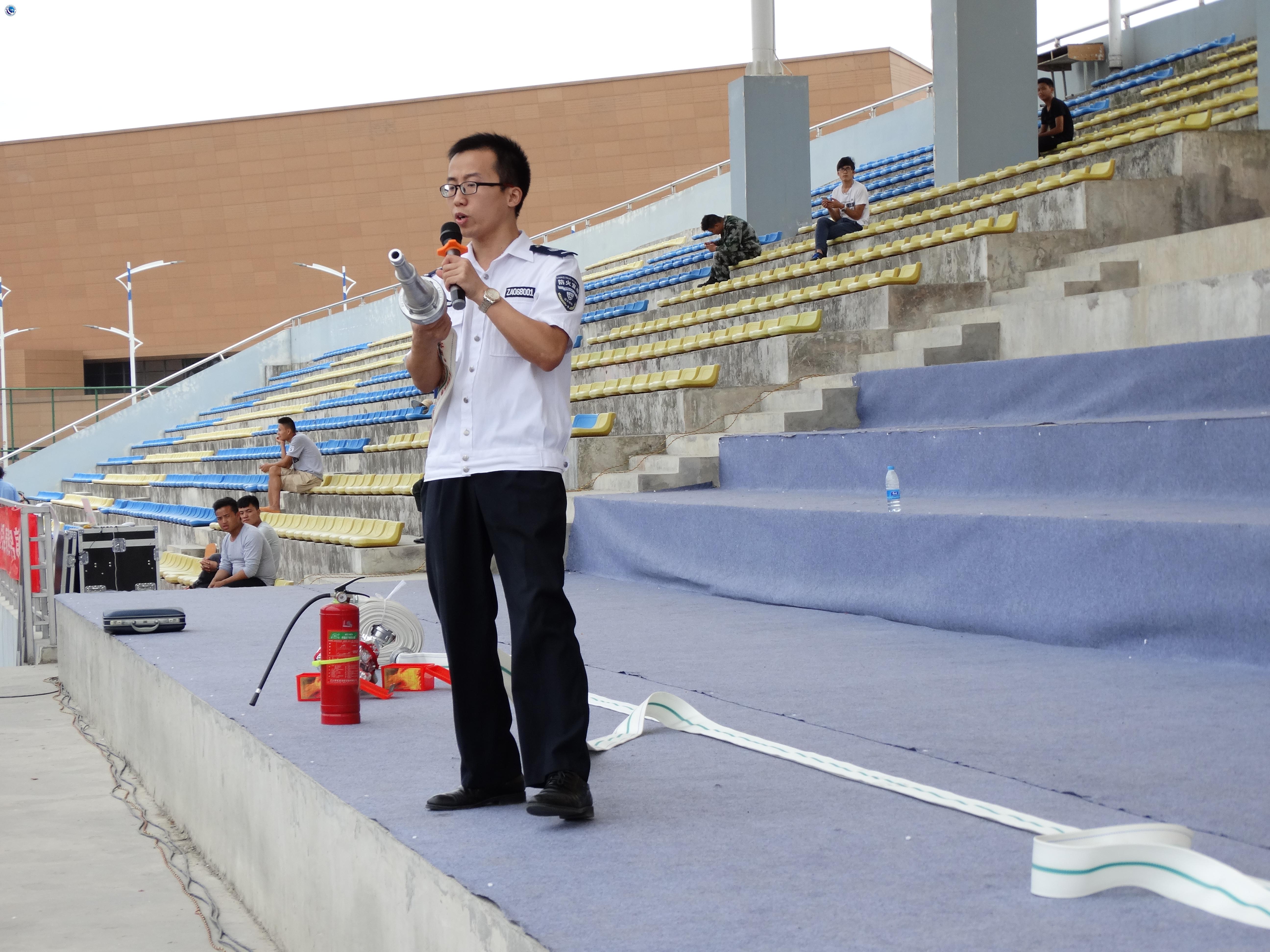 首先,保卫处处长蒋明元对本次培训的意义、目的及培训教官进行介绍,并欢迎刘万龙教官的到来。培训在同学们的热烈的掌声中拉开序幕,培训主要由“灭火、防火、逃生”等部分组成。教官详细而生动的介绍了各类消防器材的功能及使用方法(如灭火器、消防水带、防烟面罩),并传授给同学们消防安全隐患消除、高楼火灾自救、家庭火灾应对的方法。