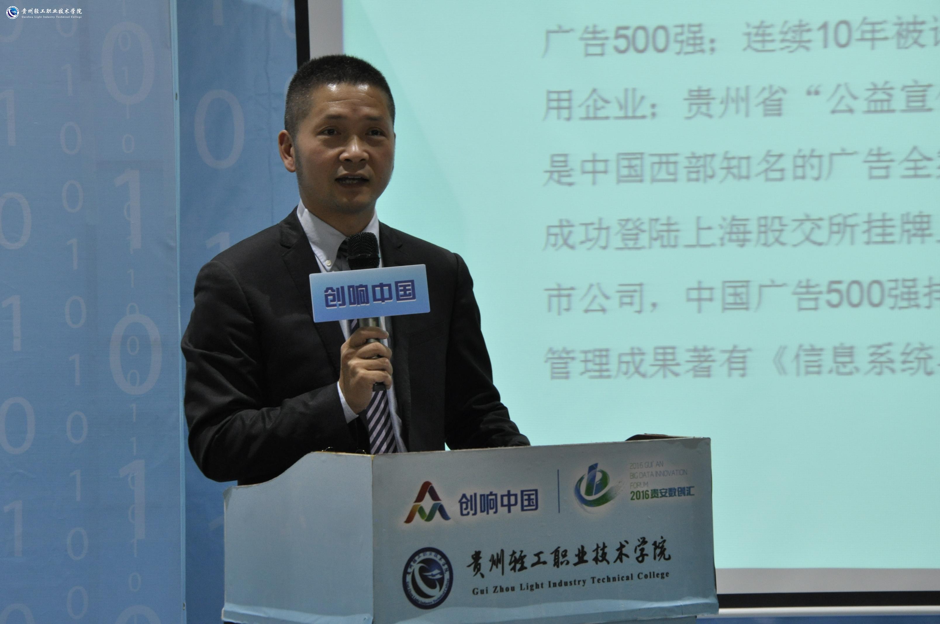 我院97届校友的熊军董事向大家介绍了他一手打造的贵州一品传媒有限公司从创立、成长到上市的18年奋斗史。他结合自身创业经历与大家分享了创业过程的艰辛和创业成功的喜悦,并勉励大家作为当代大学生要善于创新敢于创业。