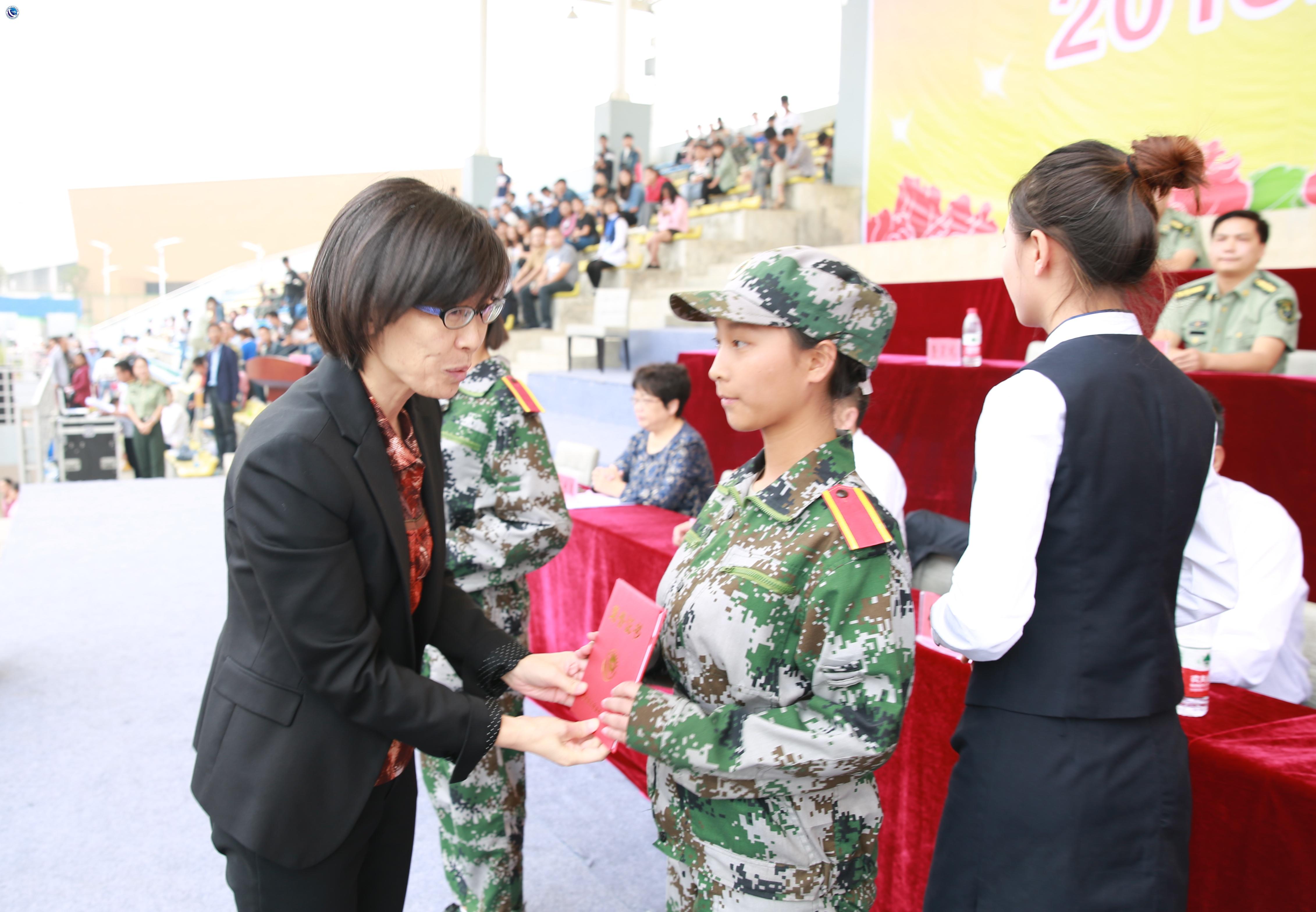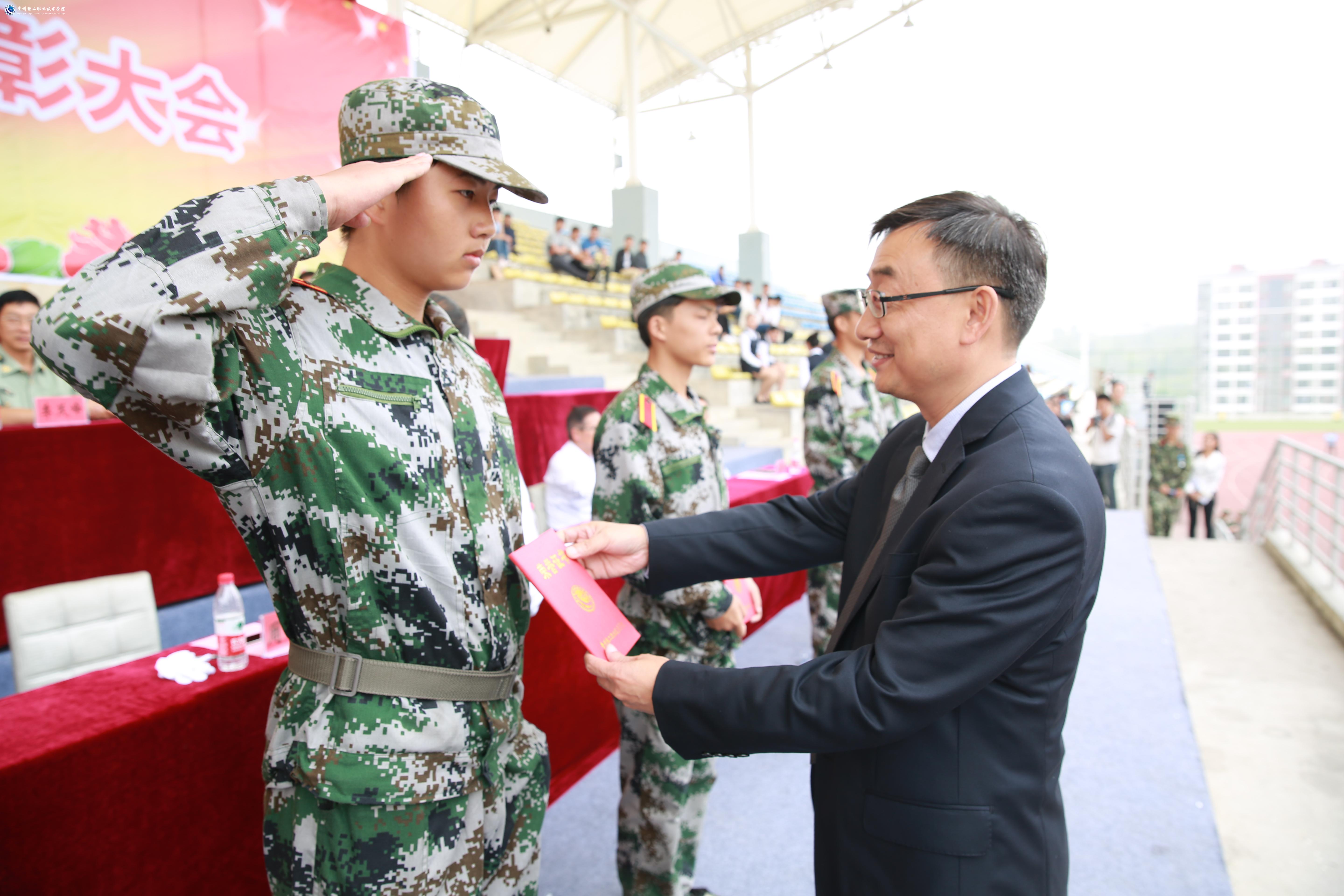 学院副院长陈秀娟宣读了《关于表彰2016级新生军训先进集体和先进个人的决定》,对本次军训中表现突出的连队和个人给予了表彰。学院党委书记卢亚莲、院长周杰等学院领导为军训先进集体和先进个人颁发了奖状和荣誉证书。其中有9个连队被评为军训优秀连队,192名学生被评为优秀学员。