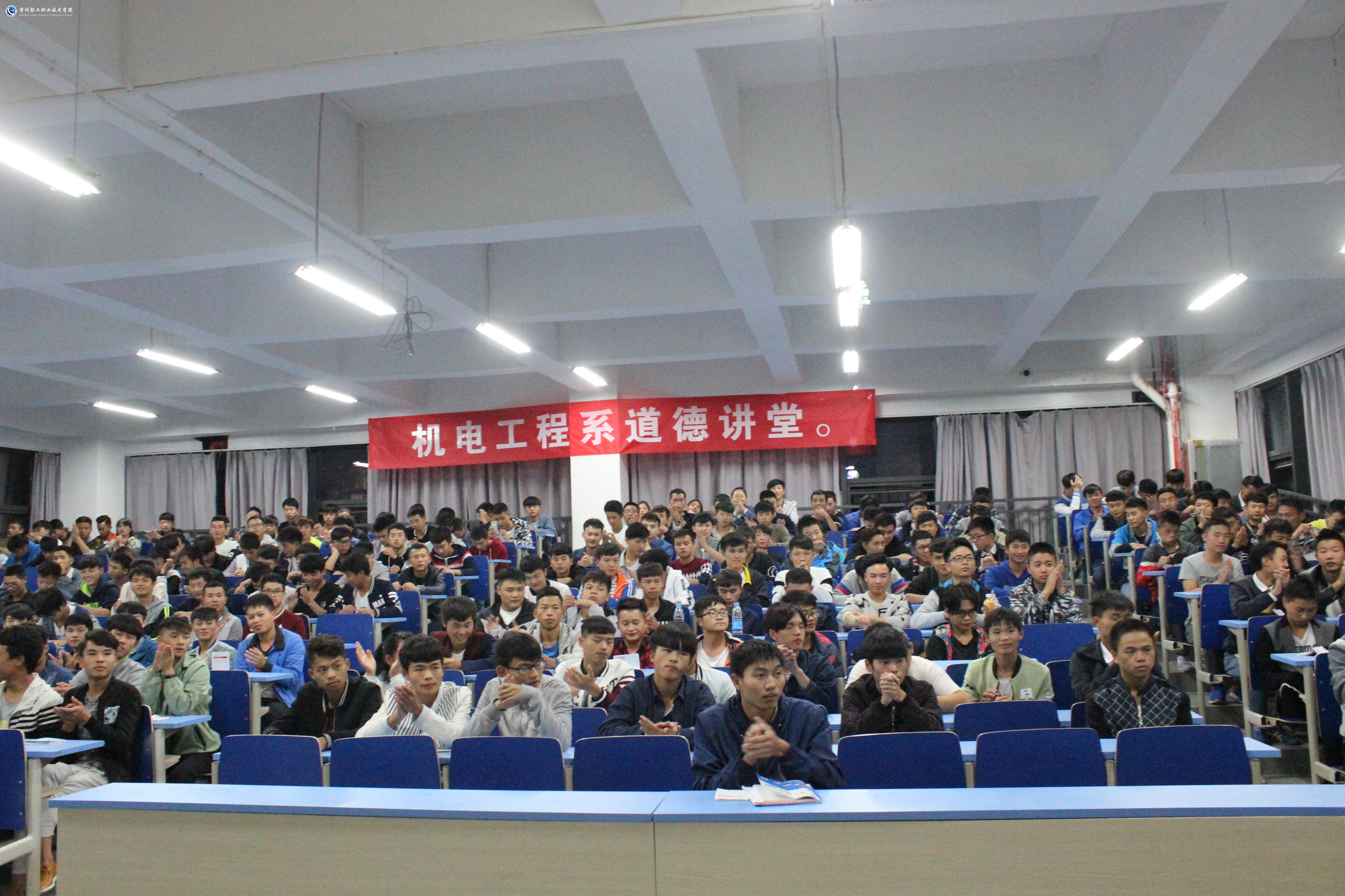 本次道德讲堂得到机电工程系全体同学的好评和赞誉,使大家都受到了很好的教育和心灵的洗涤。进一步提高了同学们的公民道德意识和水平,全体与会学生纷纷表示决心做一个讲诚信、有道德的人。