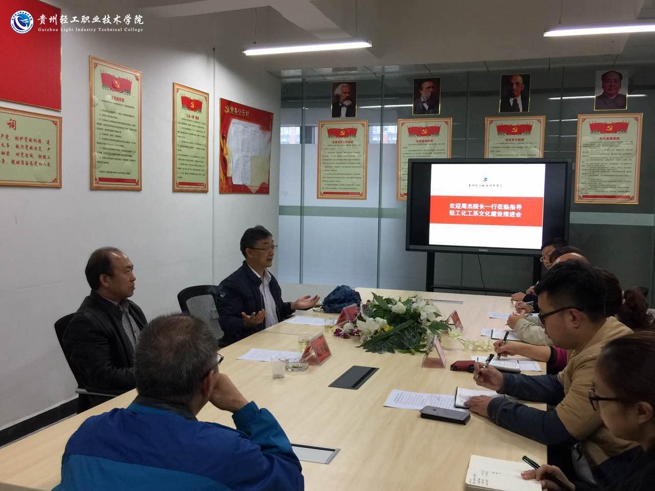 最后,周杰院长做出指示:白酒校企合作展厅第二馆,整改成茅台与贵州轻院的文化传承,深化校企联系;对于系部整体文化氛围营造,基于现有成熟的方案和理念,提炼出“健康轻工专业文化、健康轻工育人文化、健康轻工生活文化、健康轻工榜样文化、健康轻工历史文化”的健康体系,在此基础上对整体文化氛围再进行整改和细化,最后凝结成“健康”的文化品牌。