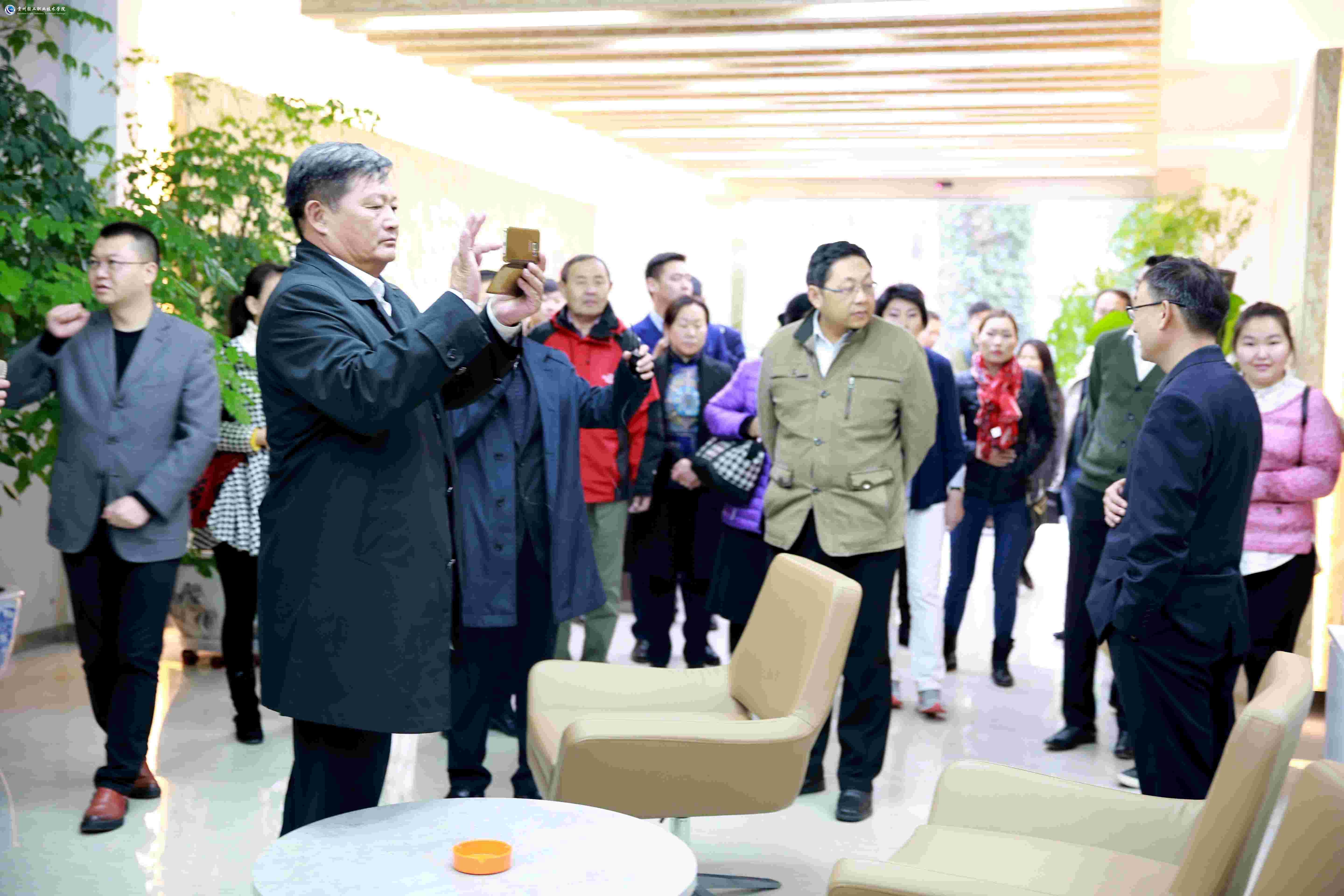 11月2日下午,蒙古国媒体代表团一行近50人走进了入驻我院的大学城双创园参观采访。学院院长周杰、副院长徐兆伯,贵安新区大学城管委会经济发展部部长李悲鸿,党工委委员、大学城管委会副主任孙西凌及相关负责人陪同参观。