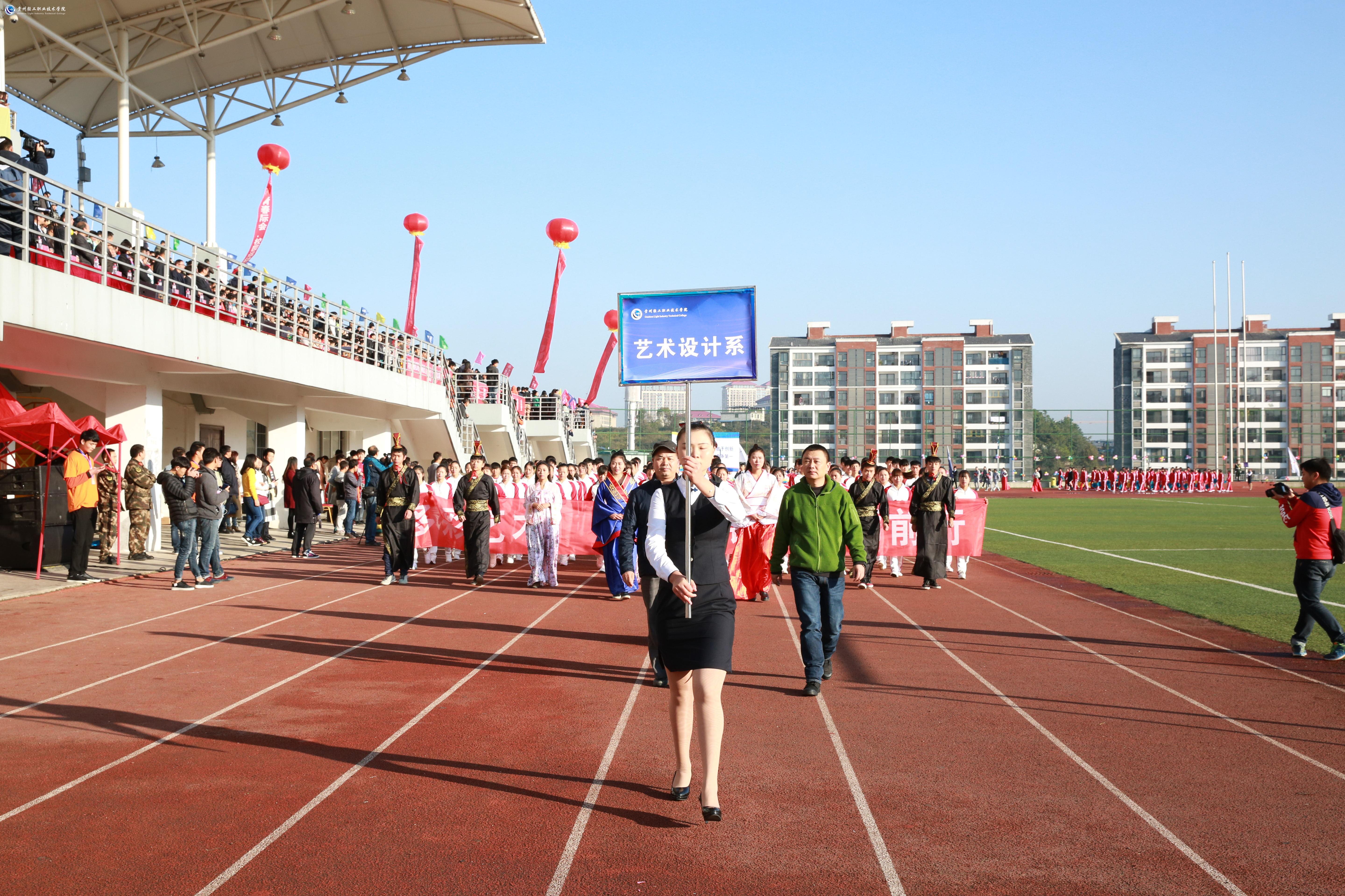 在军乐团演奏音乐的伴随下,由学院各系部组成的方队,迈着整齐的步伐高喊统一的口号走过主席台,展现出了团结创新、积极向上的良好精神风貌。