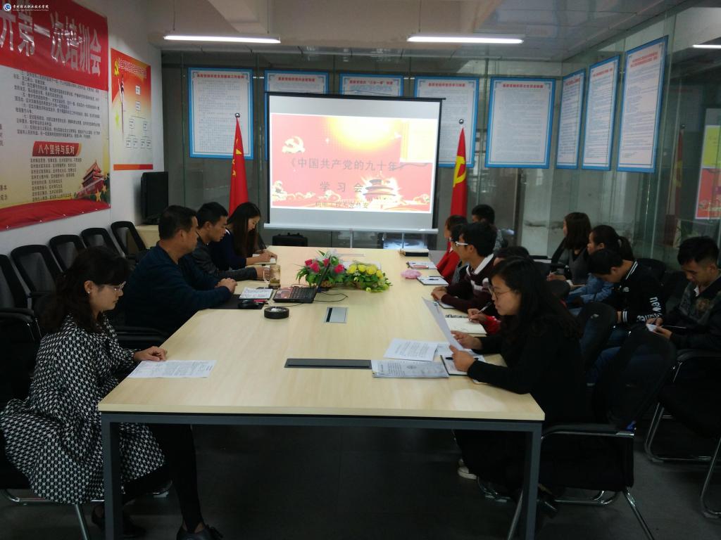 2016年11月22日上午10点,机电工程系党总支在系部会议室组织开展《中国共产党的九十年》专题学习会,系部全体党员干部、教职工参会。
