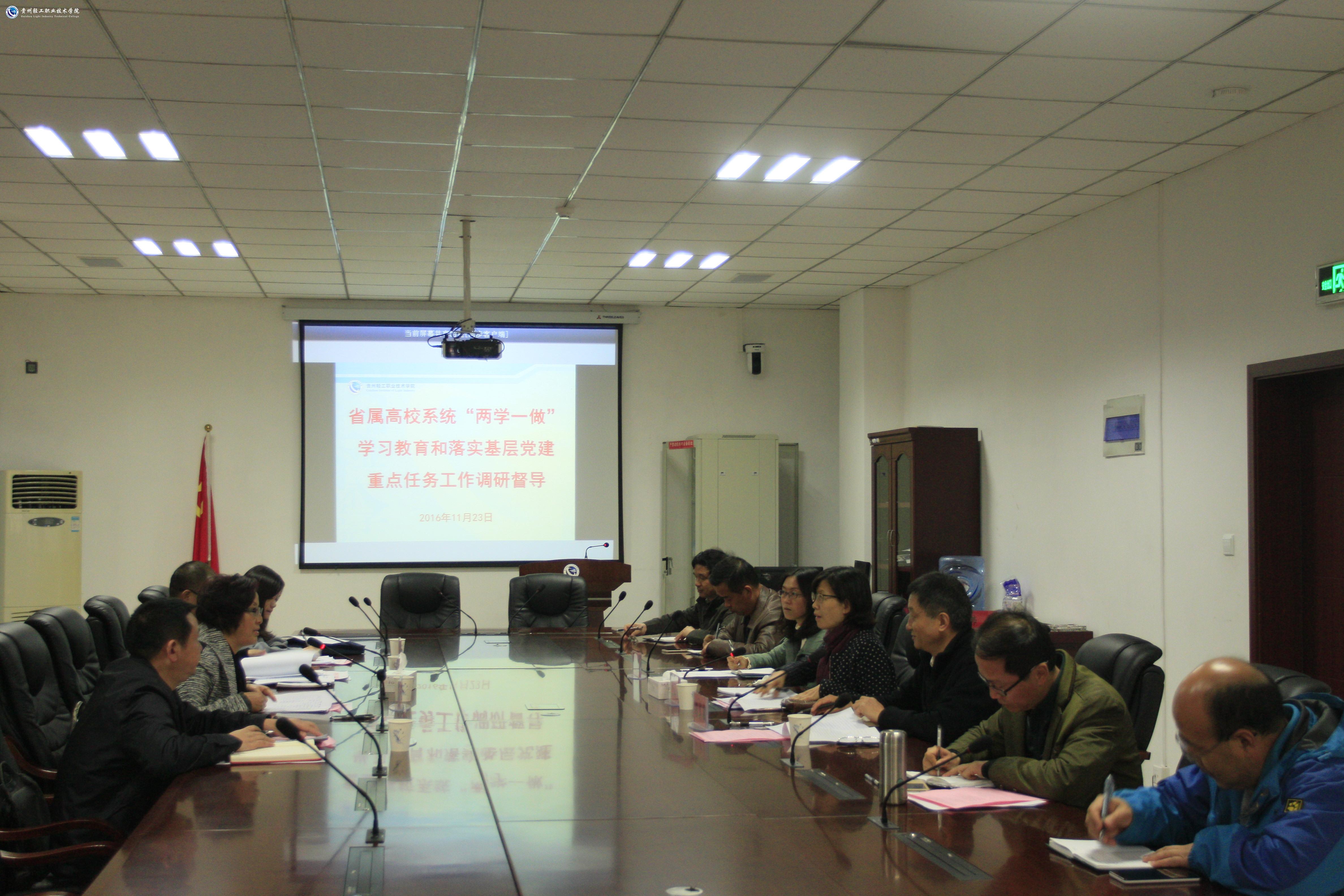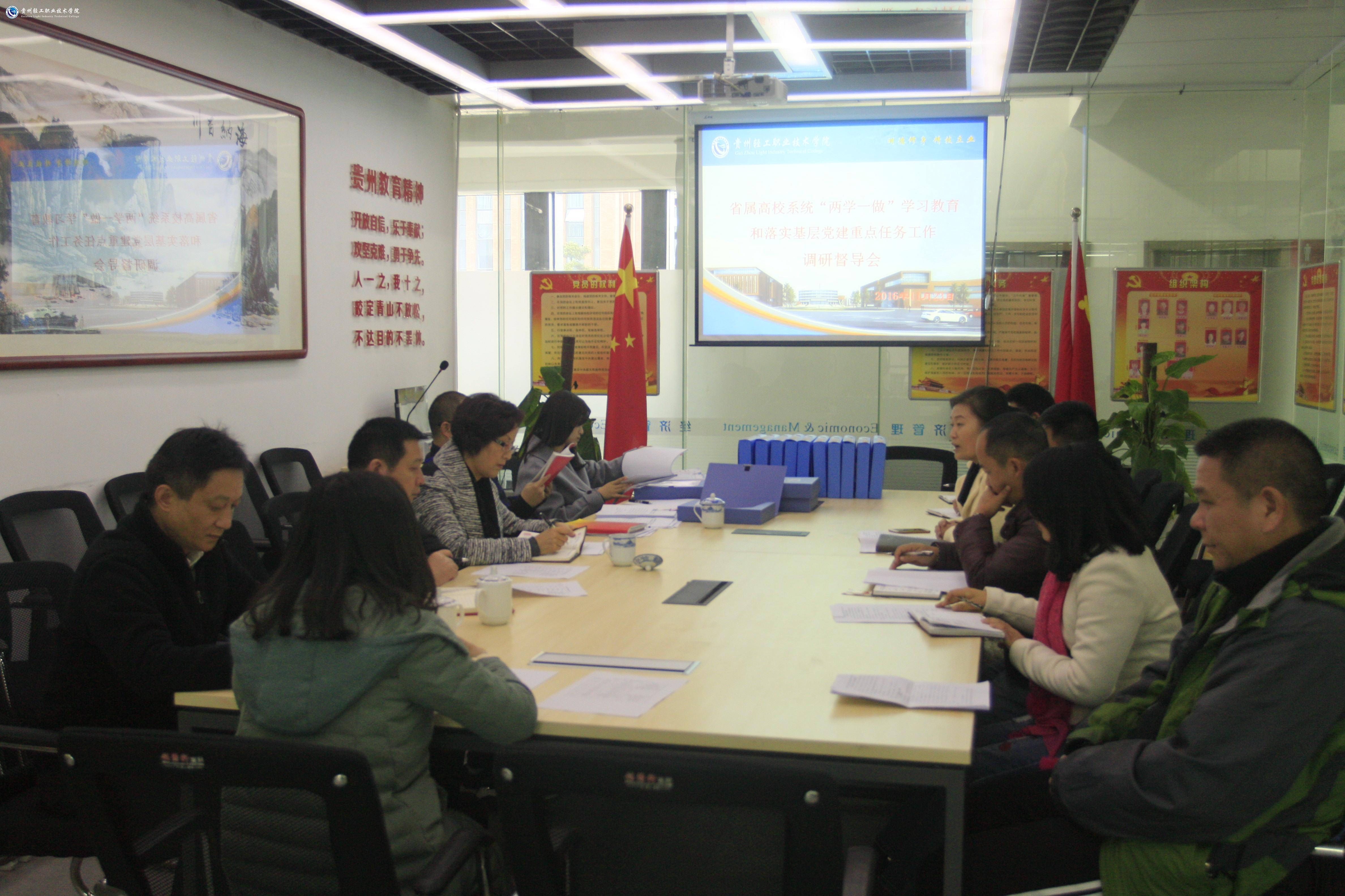 11月23日下午,全省“两学一做”学习教育和落实基层党建重点任务工作调研督导第五督导组莅临我院检查指导工作,前来检查指导工作的领导有贵州师范大学党委副书记银熙惠组长、省委教育工委组织处处长吴嶷晖、省委组织部干部四处副调研员黄智泯、省委教育工委组织处工作人员杨俐丽,学院党委副书记冯其毅、组织部相关同志陪同。