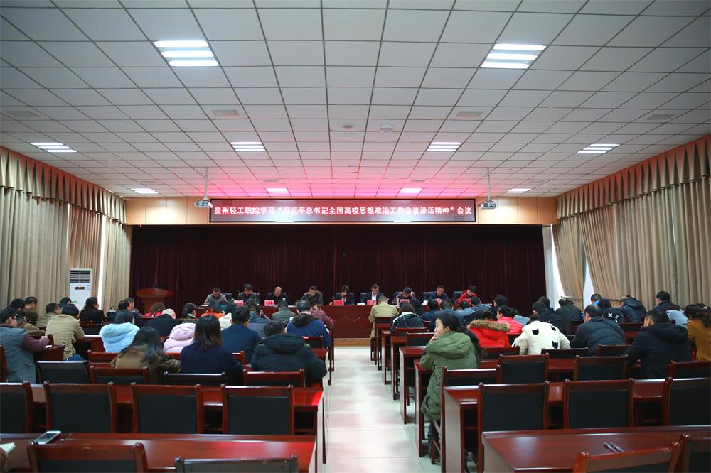 党委书记卢亚莲在主持讲话中强调,全院上下要结合学院中心工作抓好习近平总书记在全国高校思想政治工作会议上的讲话精神的学习贯彻落实。以习近平总书记在全国高校思想政治工作会议上的讲话精神为重要遵循,以立德树人为根本,把思想政治工作贯穿教育全过程,实现全程育人、全方位育人。围绕学院“十三五”规划中的重点工作,坚持“深耕轻工,融入贵安,服务贵州,开放发展”的办学定位,按照“轻工特色与产业服务并举,职业素养与技术技能并重,开放办学与内涵发展并进”的办学理念,继续解放思想,推进改革创新,聚焦内涵建设,服务产业发展,全面建成“省内一流、全国有影响的高水平高职院校”!为贵州轻工产业和经济社会发展提供人才支撑和智力支持。