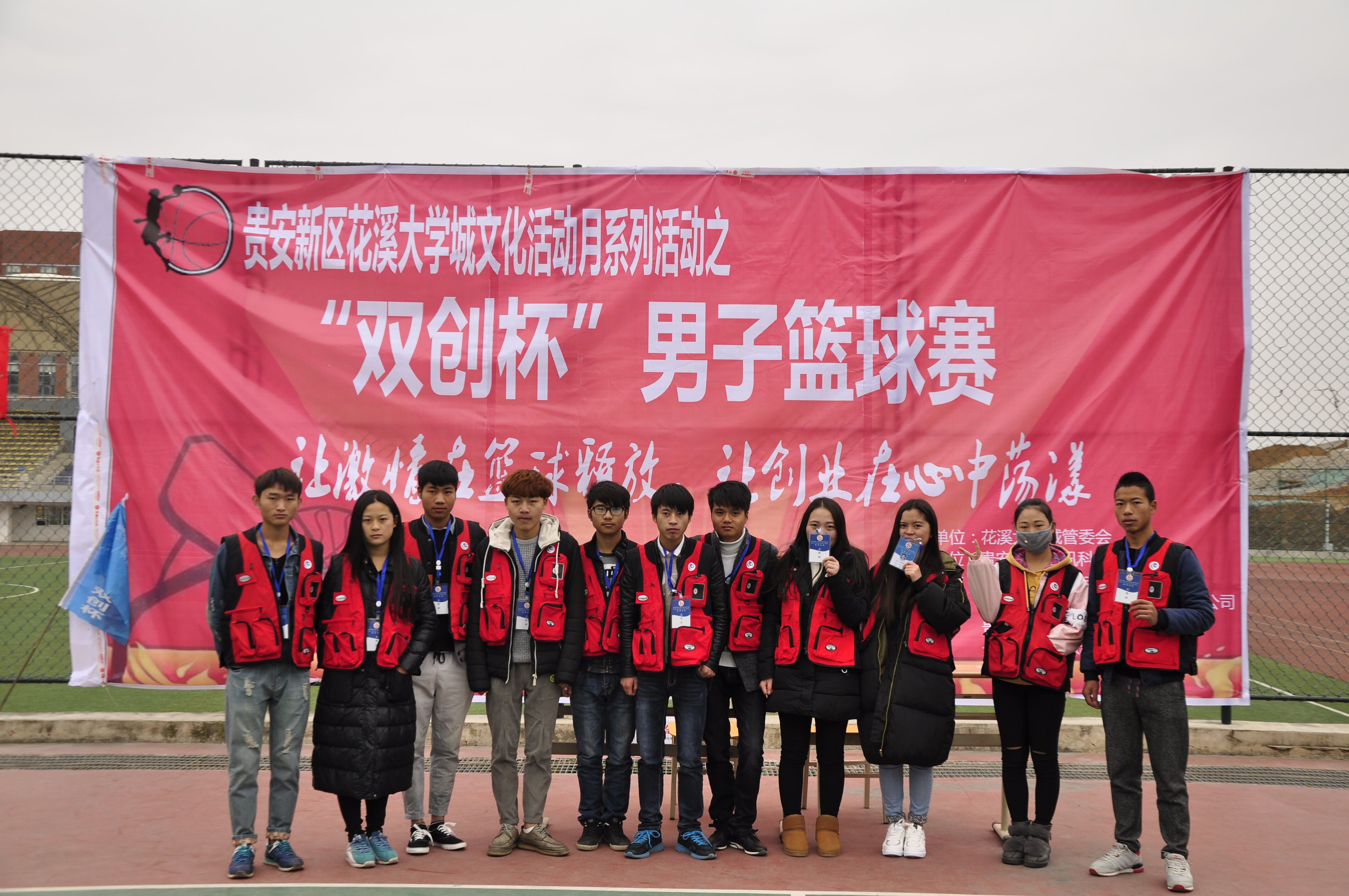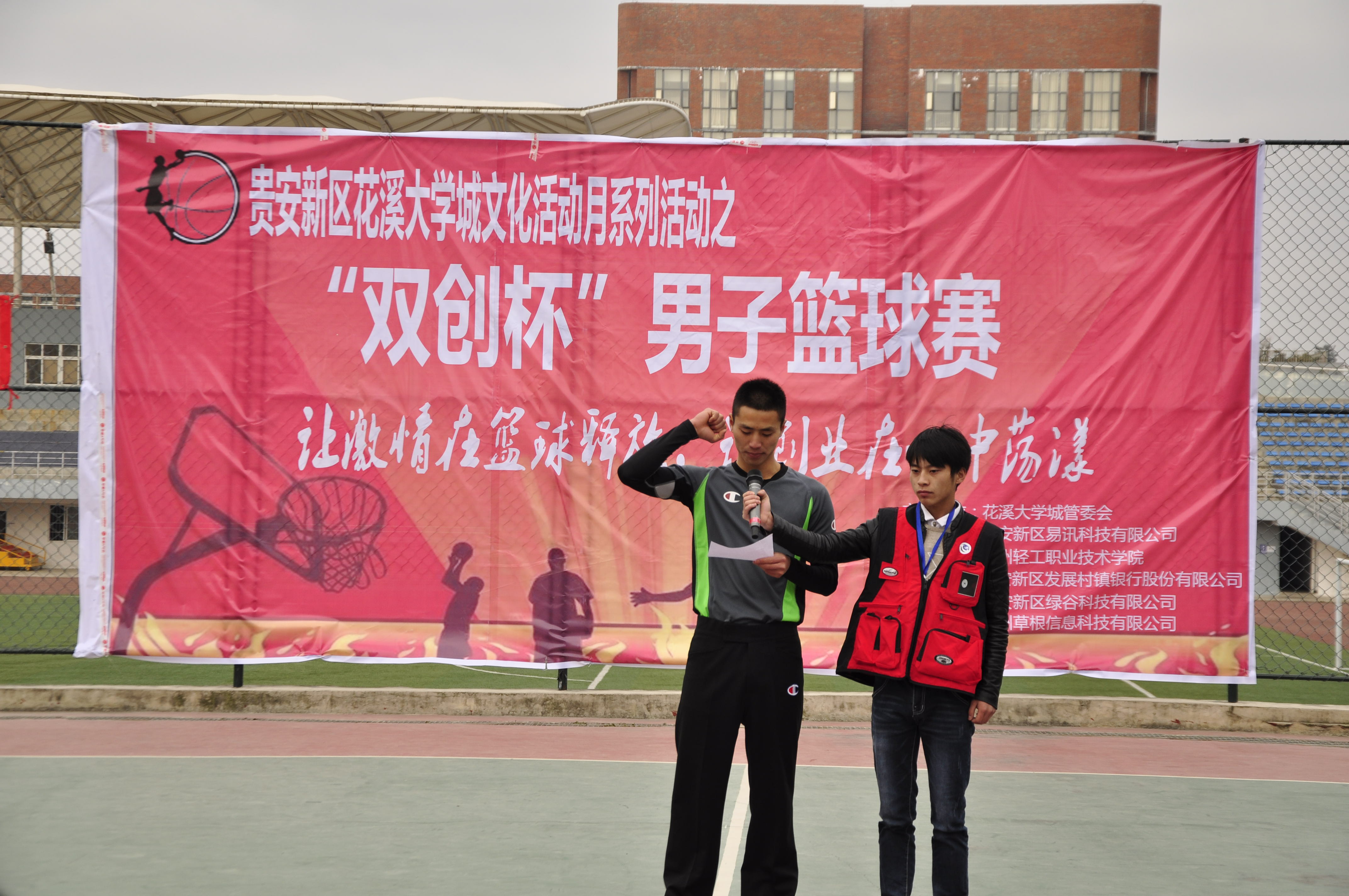 12月17日至19日,由花溪大学城管委会主办,贵安新区易讯科技公司承办,贵州轻工职业技术学院、贵安新区发展村镇银行股份有限公司、贵安新区绿谷科技有限公司和贵安草根信息科技有限公司协办的第三届贵安新区花溪大学城文化活动月之“双创杯”男子篮球赛在我院篮球场举行。除了精彩的篮球赛事之外,比赛场上、幕后时刻忙碌着的,身穿红色志愿马甲的轻工职业技术学院学生志愿者们也成为了一道别致的风景。