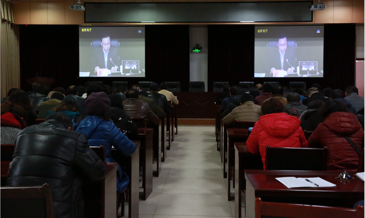 1月23日,2017年全省教育工作会议暨党风廉政建设工作视频会议在省教育厅举行。院长周杰,纪委书记董平等学院领导到教育厅主会场参加会议;同时,学院在行政楼五楼(第三会议室)设分会场,在校学院领导班子成员、中层干部、副科级干部参加视频会议,大家认真聆听了副省长陈鸣明的重要讲话和省教育厅党组书记、省委教育工委书记、厅长王凤友作的工作报告,进一步明确了学院2017年工作的方向和重点。