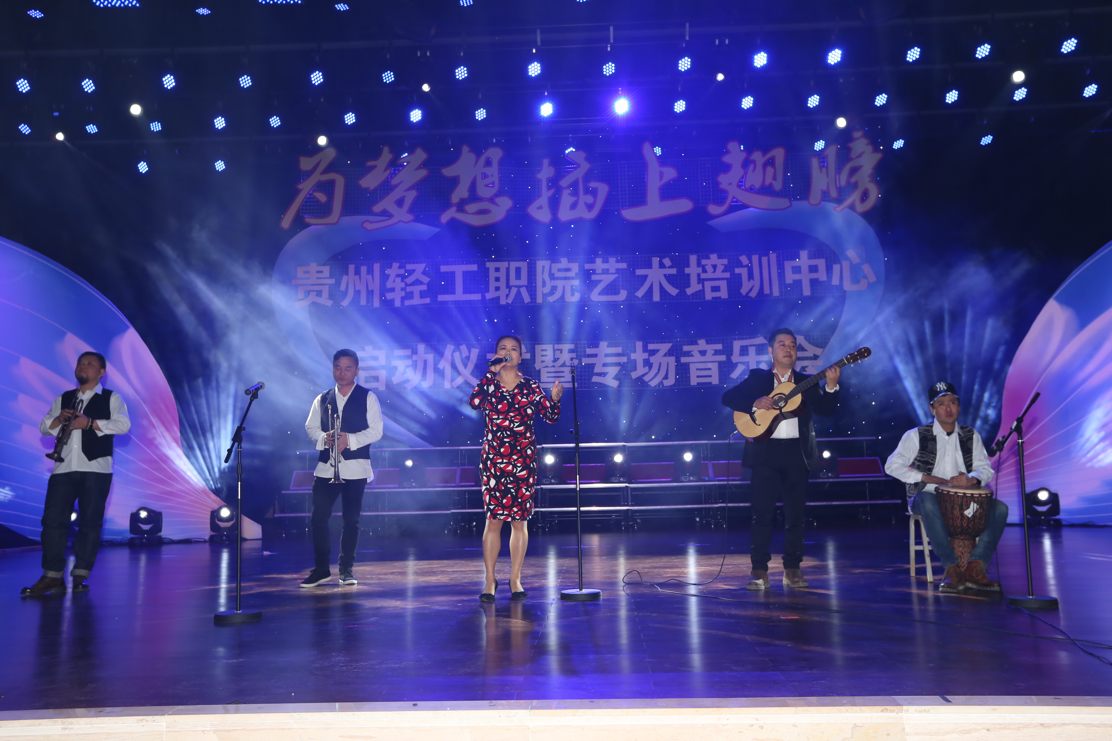 为加强校园文化建设,充分挖掘和培育艺术人才,贵州轻工职业技术学院团委与贵州中为文化传媒有限公司于2017年1月17日举行校企合作签约仪式,成立轻院艺术培训中心。3月27日晚19:30,艺术培训中心启动仪式暨专场音乐会在学生活动中心礼堂隆重举行。贵州省旅游资源保护与开发促进会会长、贵州省直属机关党工委原书记何子明,学院党委副书记杜平,党委委员、副院长陈秀娟,党委委员、党政办公室主任孟永国,贵安新区大学城管委会创新创业部部长李悲鸿,学院学生处处长、团委书记暨星球,保卫处处长蒋明元,轻工化工系党总支书记余寒,保卫处副处长张志,团委副书记黄海燕,招生就业办公室副主任吴玫及贵州中为文化传媒有限公司创始人龙佳玄、学生代表共计900余人齐聚一堂,共享视听盛宴。