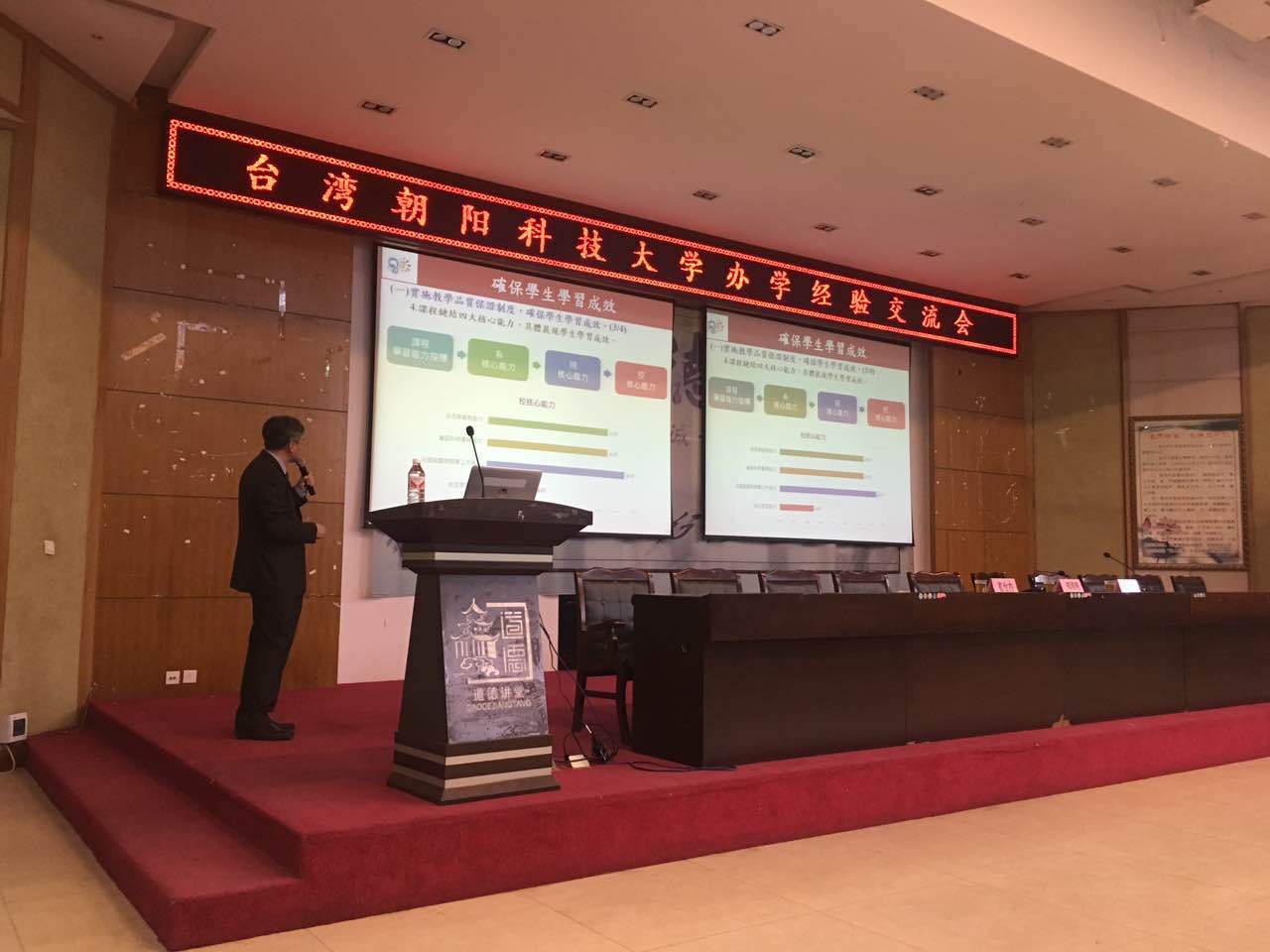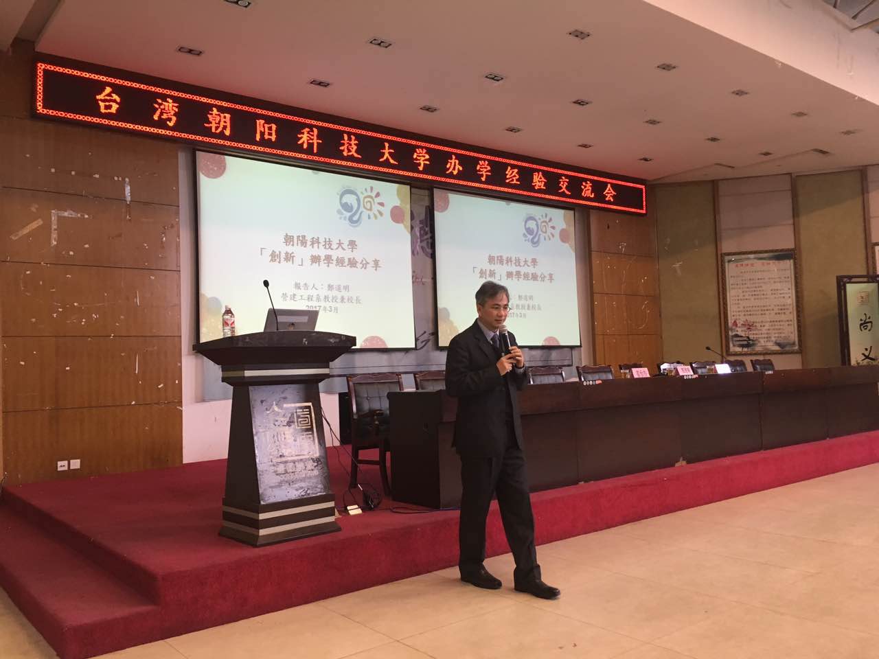 当日下午15点,郑道明校长举办了主题为《朝阳科技大学创新办学经验分享》的讲座,他首先为大家介绍了美丽的朝阳科技大学,再谈到学校校务研究与校务治理方面的探索经验与发展历程,以及朝阳科技大学对国际化发展的核心作为。