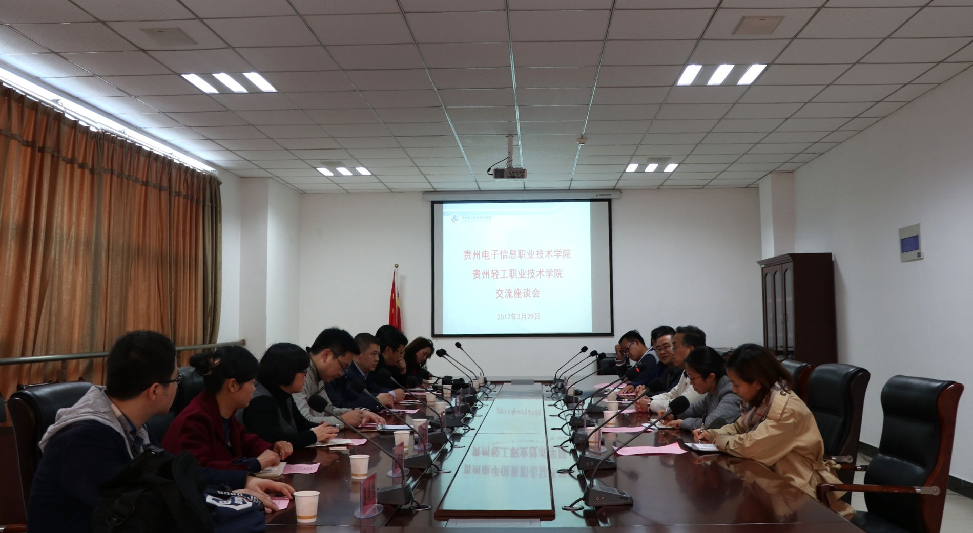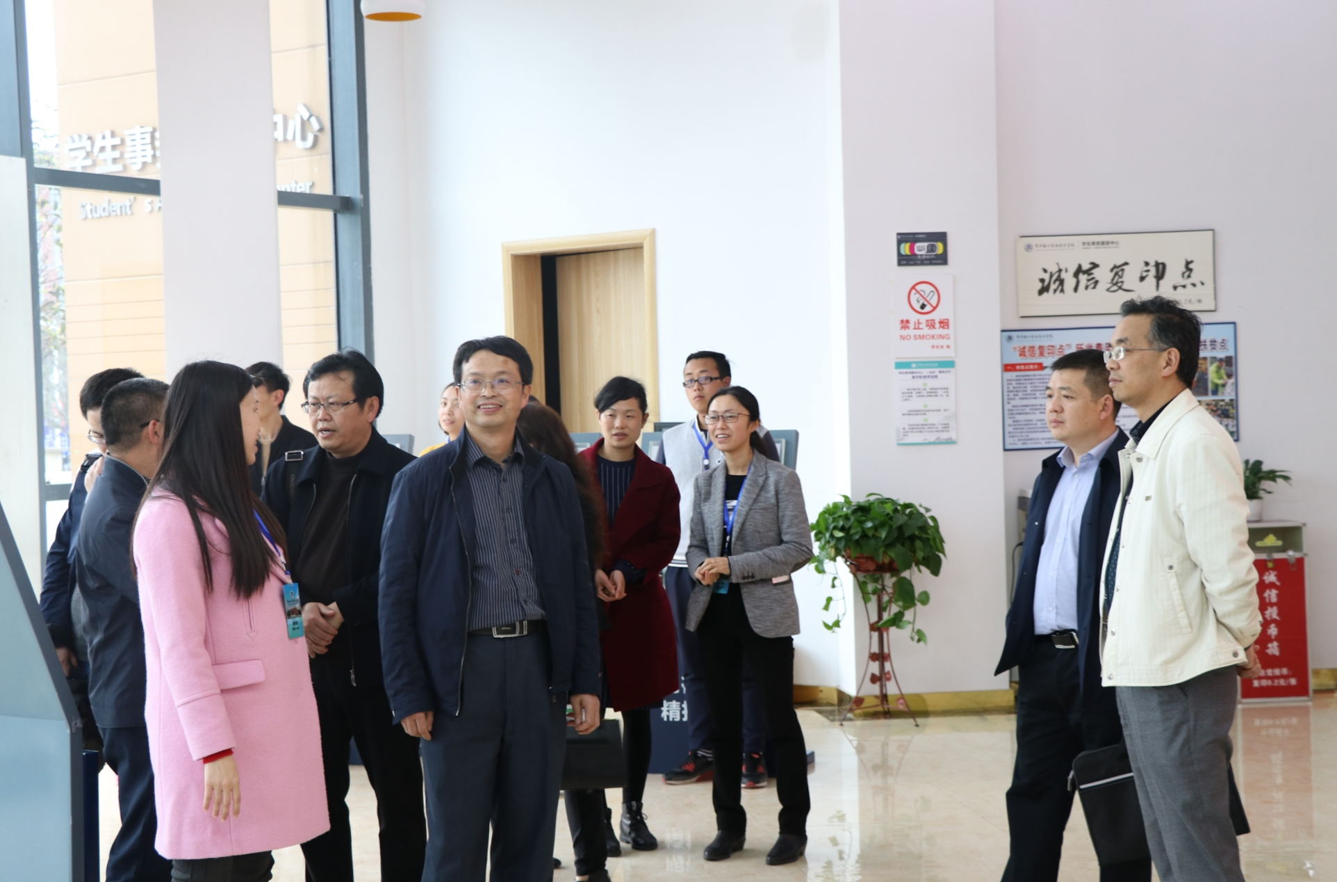 3月29日下午,贵州电子信息职业技术学院党委副书记黄美煜、副院长孔杰一行9人赴学院考察交流,学院党委副书记杜平,党委委员、党政办主任孟永国及相关部门负责同志陪同。