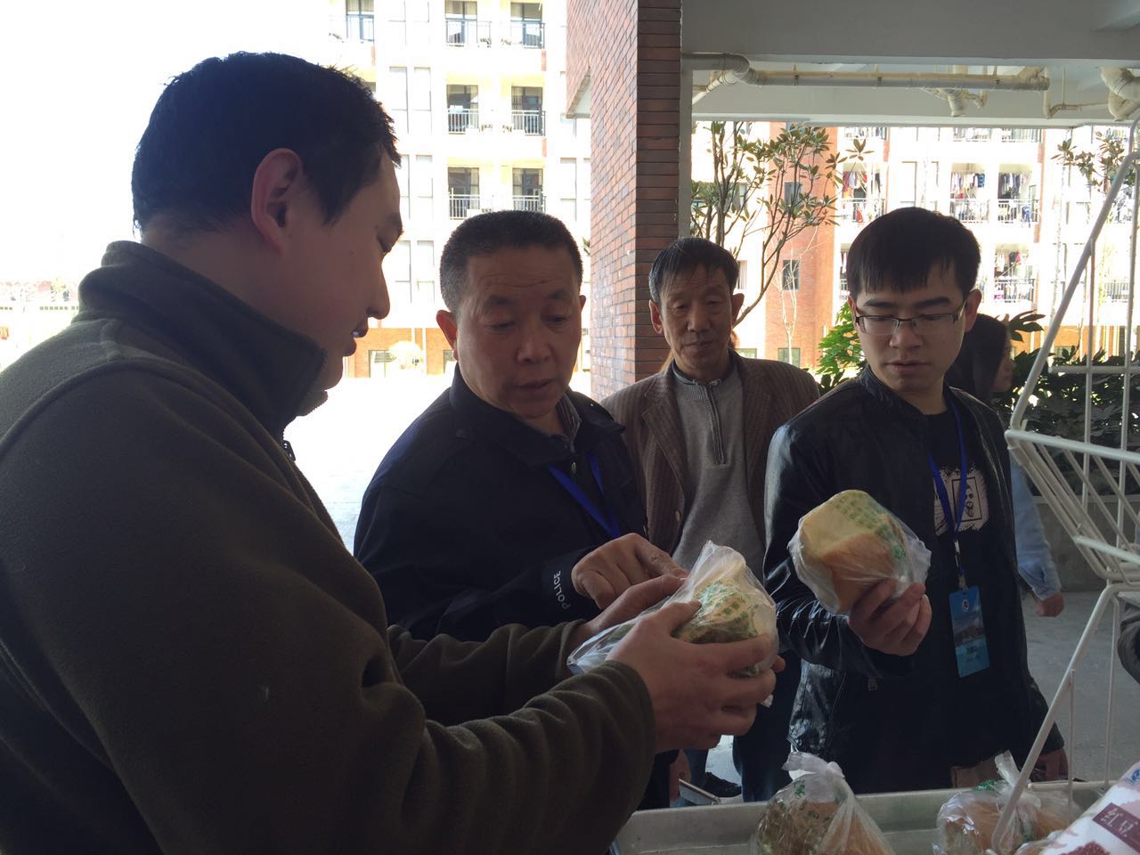 (图为检查组对校内商铺食品进行检查)