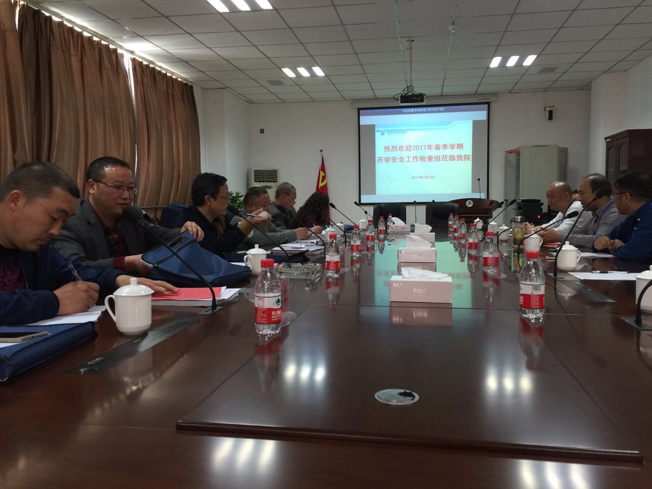 4月7日上午,2017年春季学期开学交叉检查组莅临我院检查工作,检查组由遵义师范学院副院长颜永强任组长,遵义师范学院、遵义医学院、遵义医专、遵义职院保卫处领导担任组员,本次检查活动由省教育厅组织开展。
