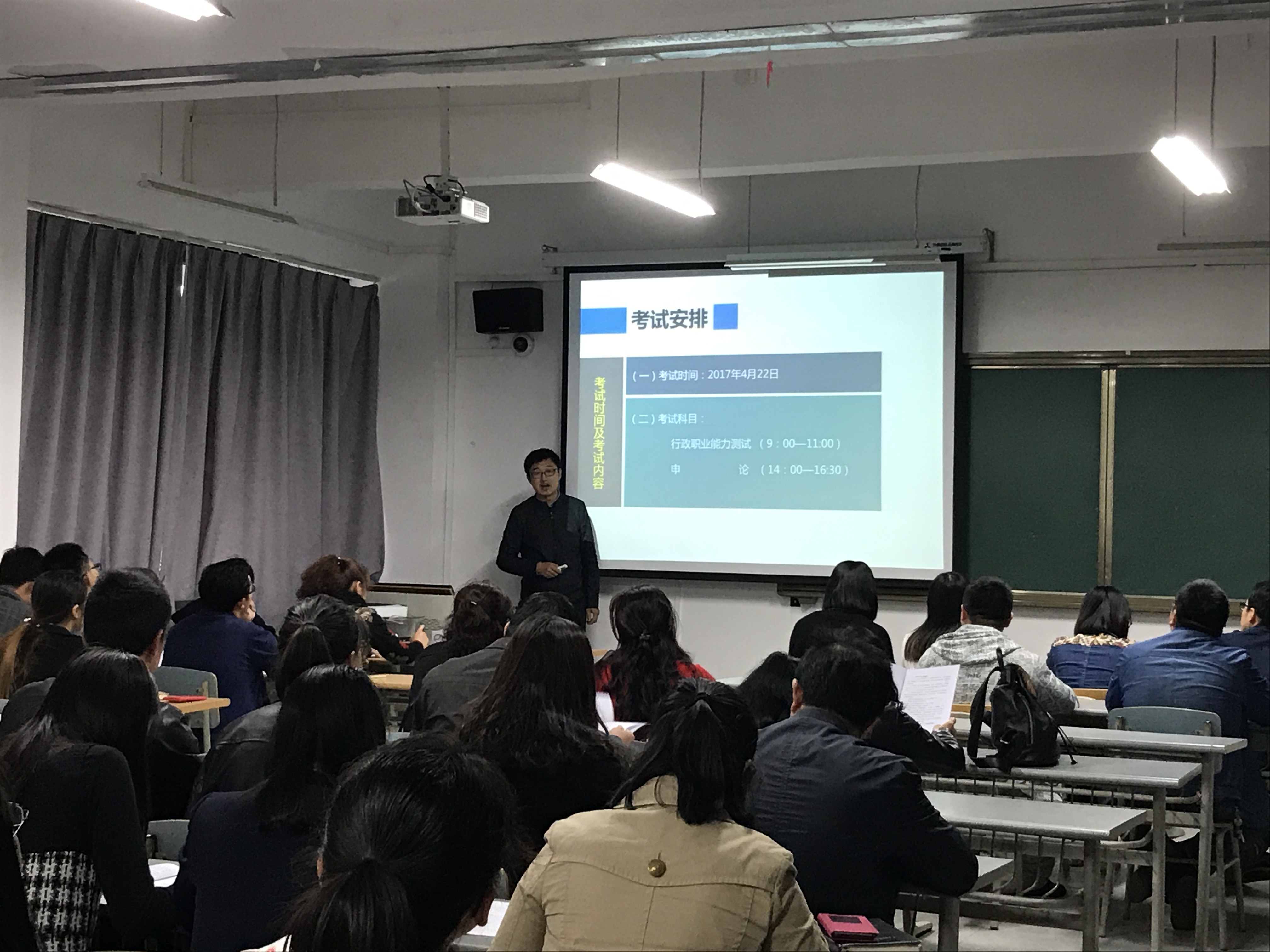 4月21日下午2时,学院组织开展了对贵州省2017年招录公务员笔试考试省直考区考务工作的专项培训,本次培训由我院教务处副处长王珂佳主持,参加培训的人员为担任22日笔试考试的全体监考老师。
