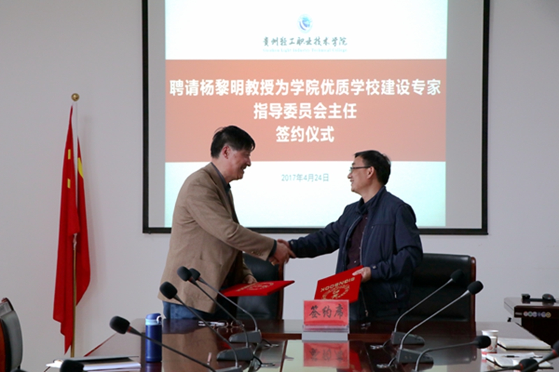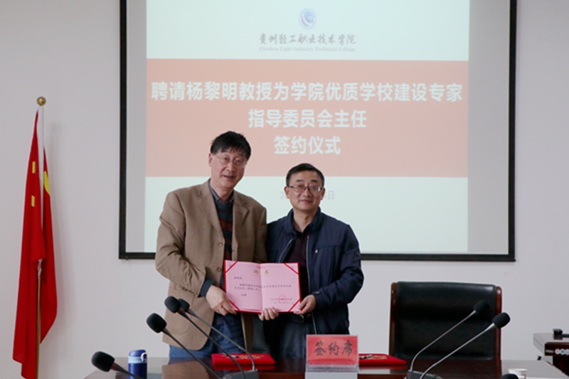 4月24日下午,杨黎明教授聘任签约仪式在行政楼第二会议室举行。院长周杰代表我院与杨黎明教授签署合作协议,聘请杨黎明教授为学院优质学校建设专家指导委员会主任,并颁发聘书。签约仪式由副院长陈秀娟主持,各系部主任和副主任、教务处、诊改办负责人与双创办成员均出席仪式。