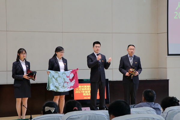 5月11日,贵州省2017年人才培养质量提升工程第二个项目——大师工作室的现场评审在贵阳职业技术学院学术报告厅举行。我院艺术设计系吴安丽大师工作室经过学校申报、材料初审等环节后入围并参加了现场评审。由学院副院长陈秀娟带队,各系代表教师及双创办成员都到现场进行了观摩与学习。