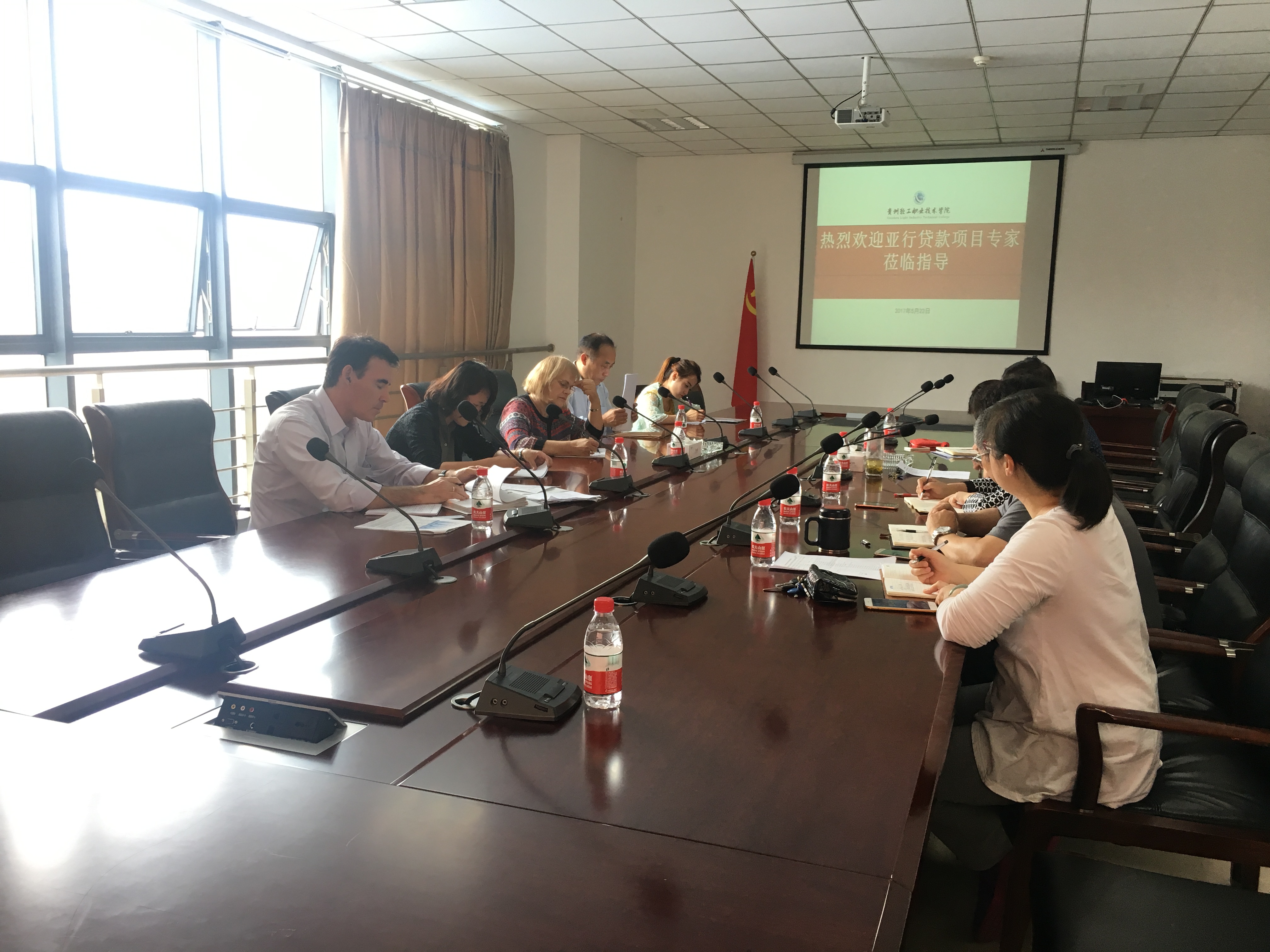 副院长何亚平首先向专家组汇报我院基本情况、我院亚行贷款资金安排情况并分别介绍了各项目进度情况。亚行独立评估局的专家提问了解了学院各项情况,重点询问了在校学生情况、贫困生比例、课程开发、招生就业、校企合作、师资培训等,尤其对我院项目化教学、校企合作项目的成果表示赞赏。