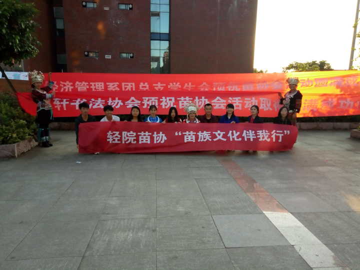 5月24至25日,学院苗协会在一食堂门口,开展了苗族文化研究协会“苗族文化伴我行暨非物质文化遗产展示”。出席本次活动的领导有团委副书记黄海燕、经济管理系团总支副书记黄章琼、轻工苗协小组指导老师朱培、社团联合会、各兄弟社团以及各大高校苗协小组。