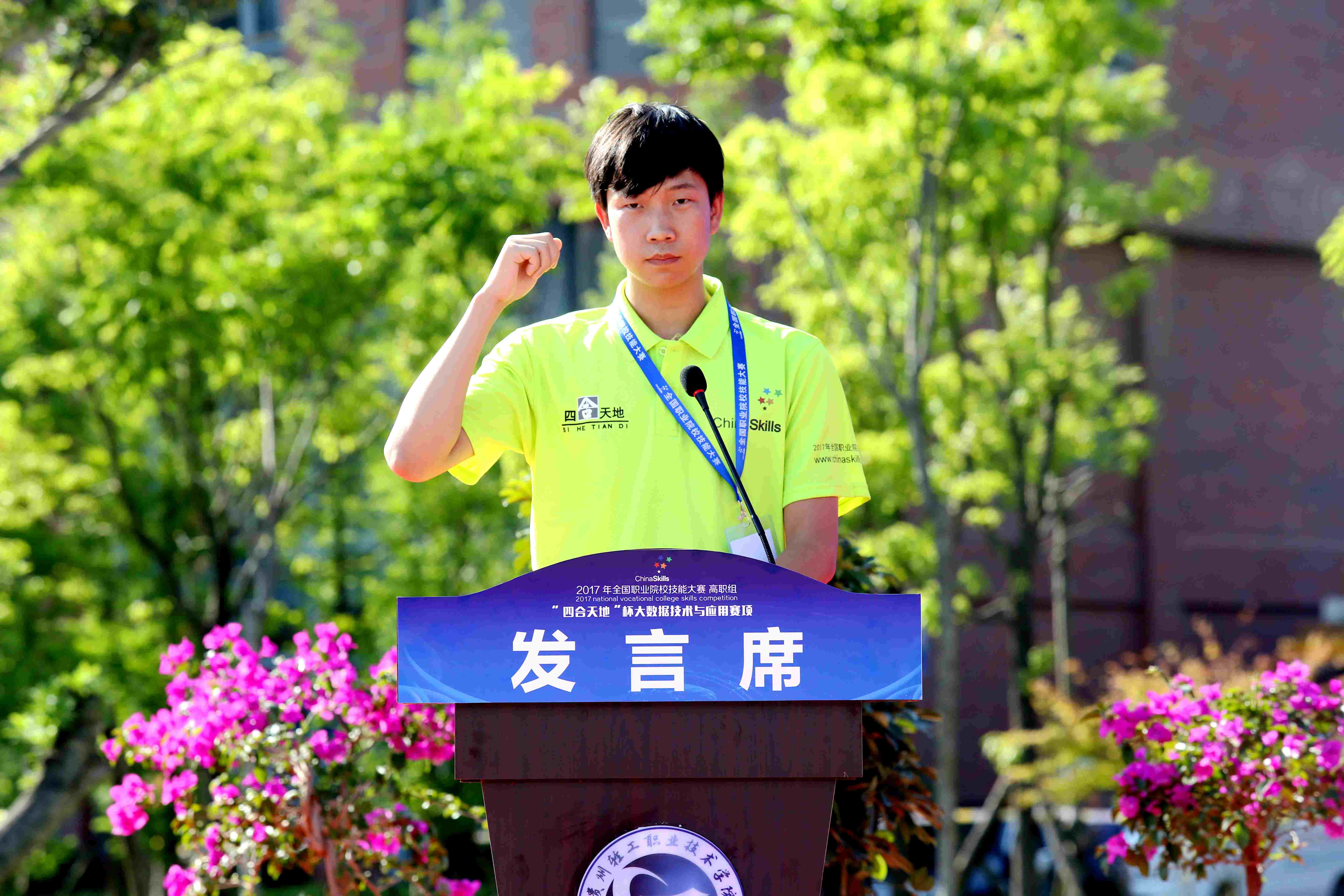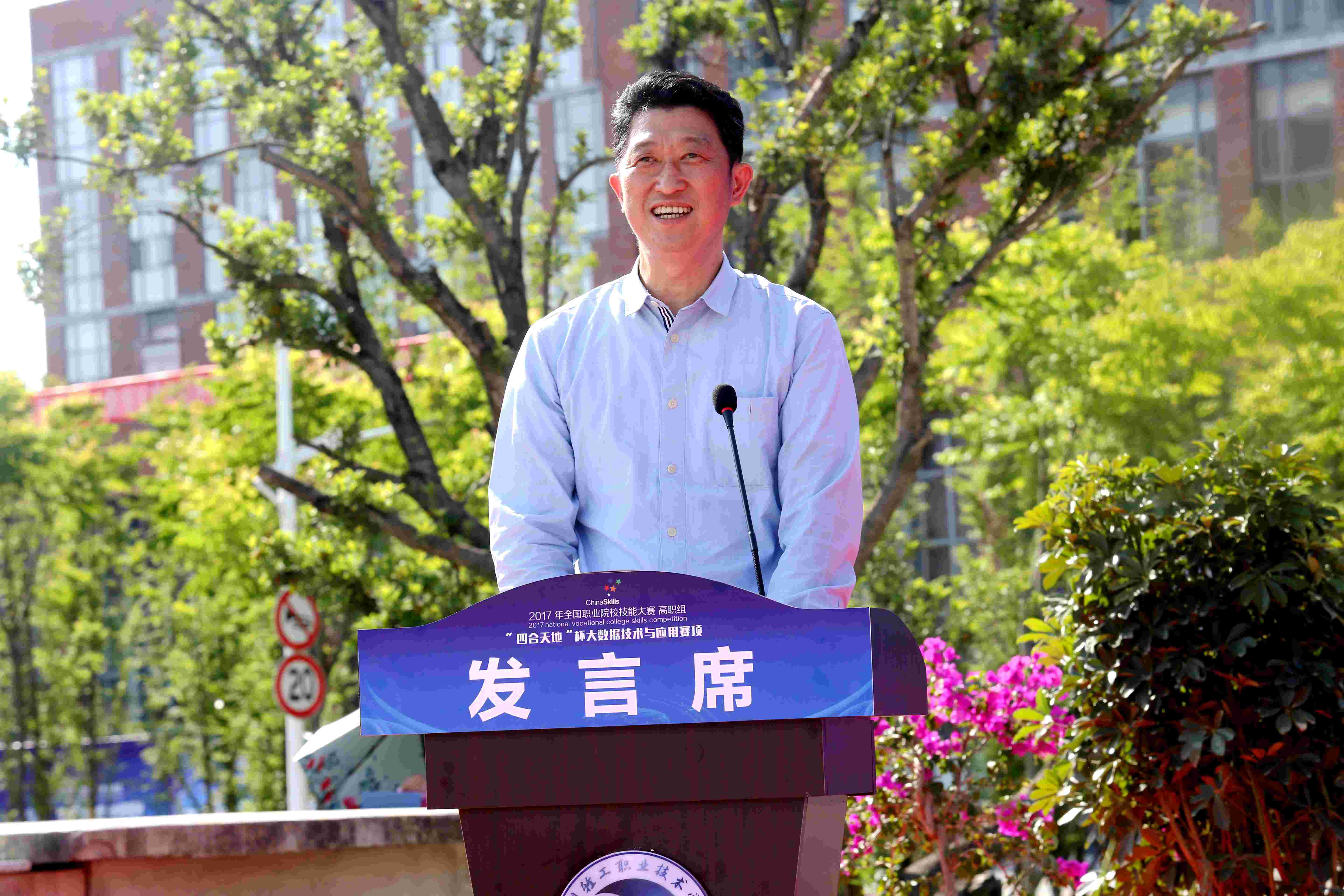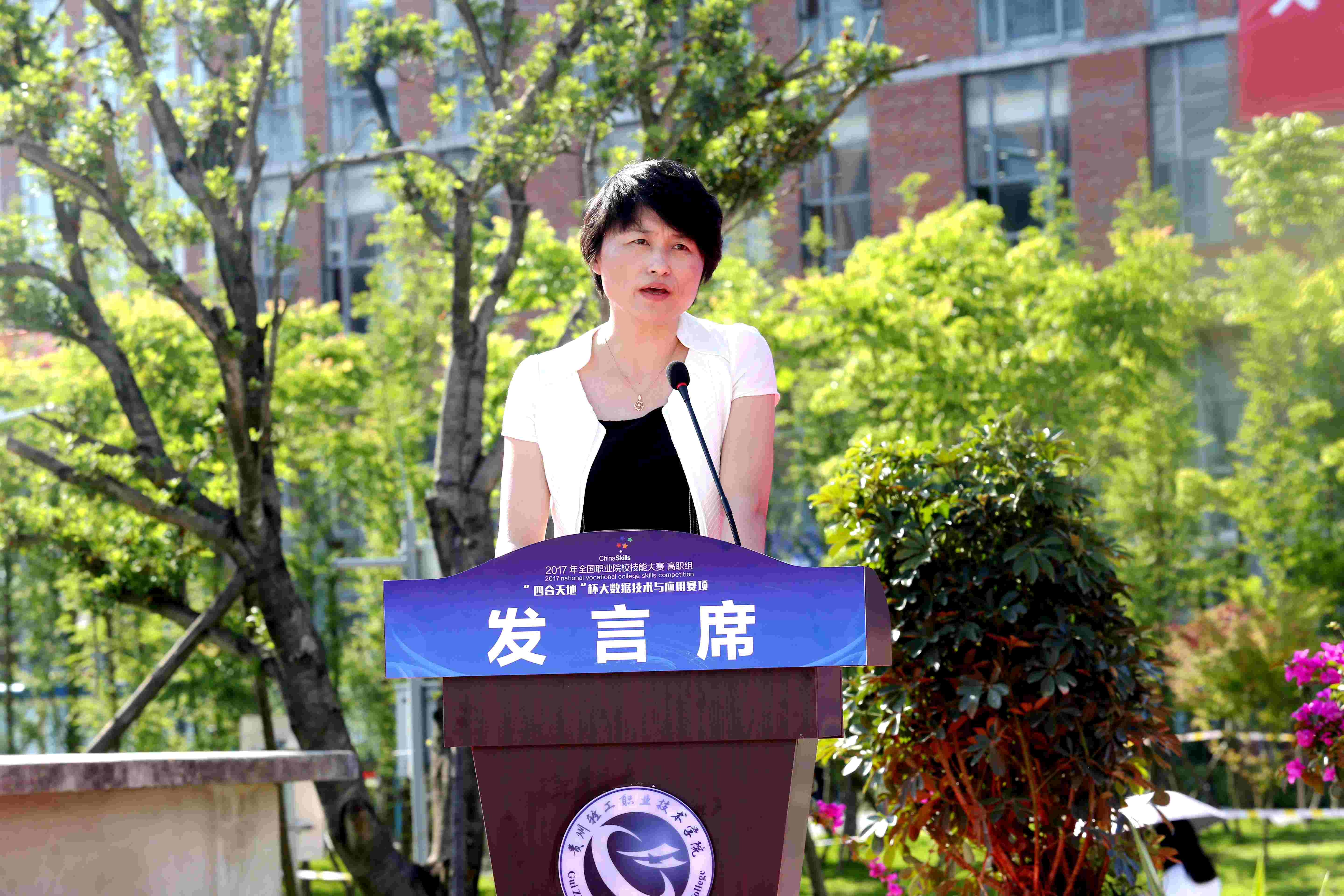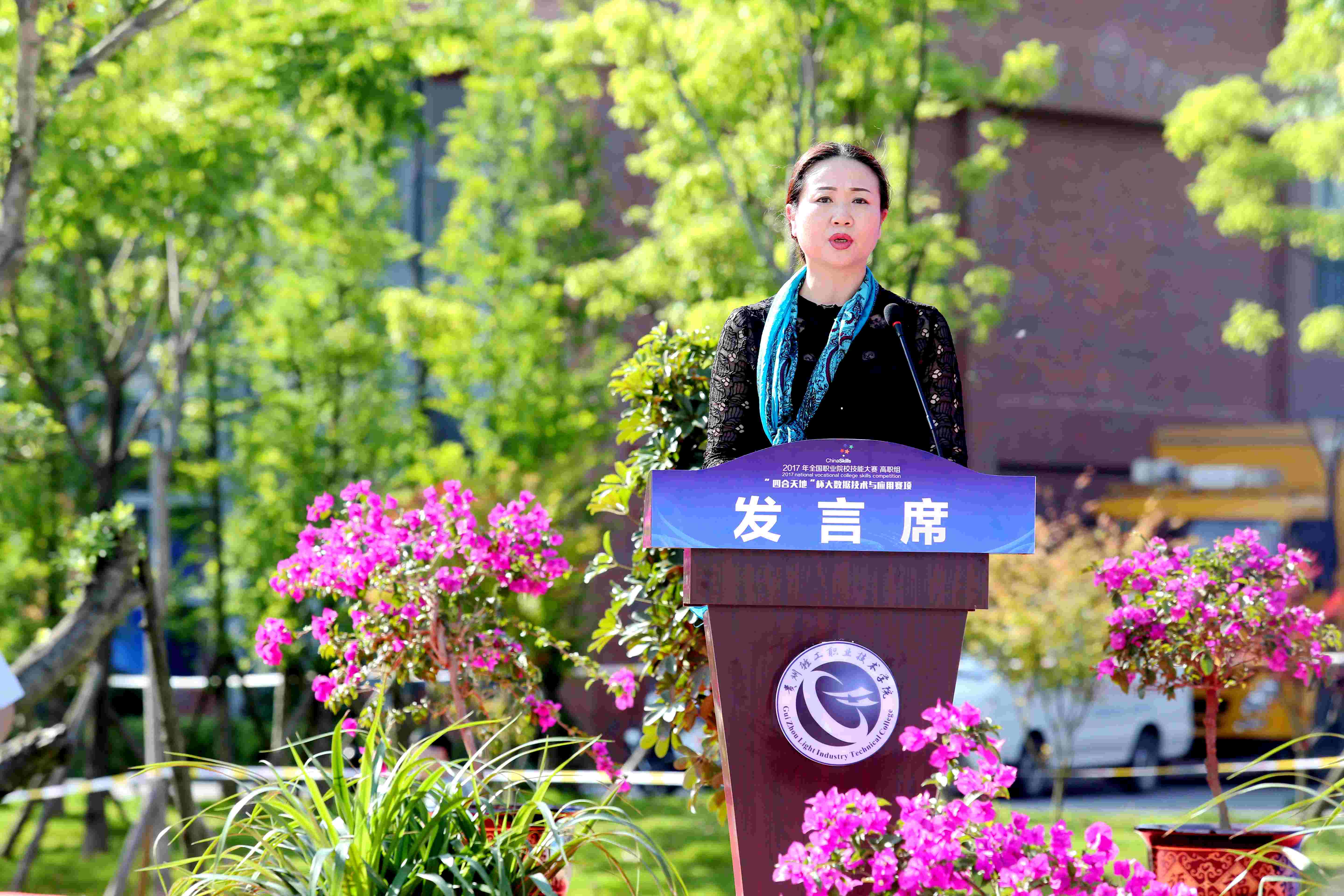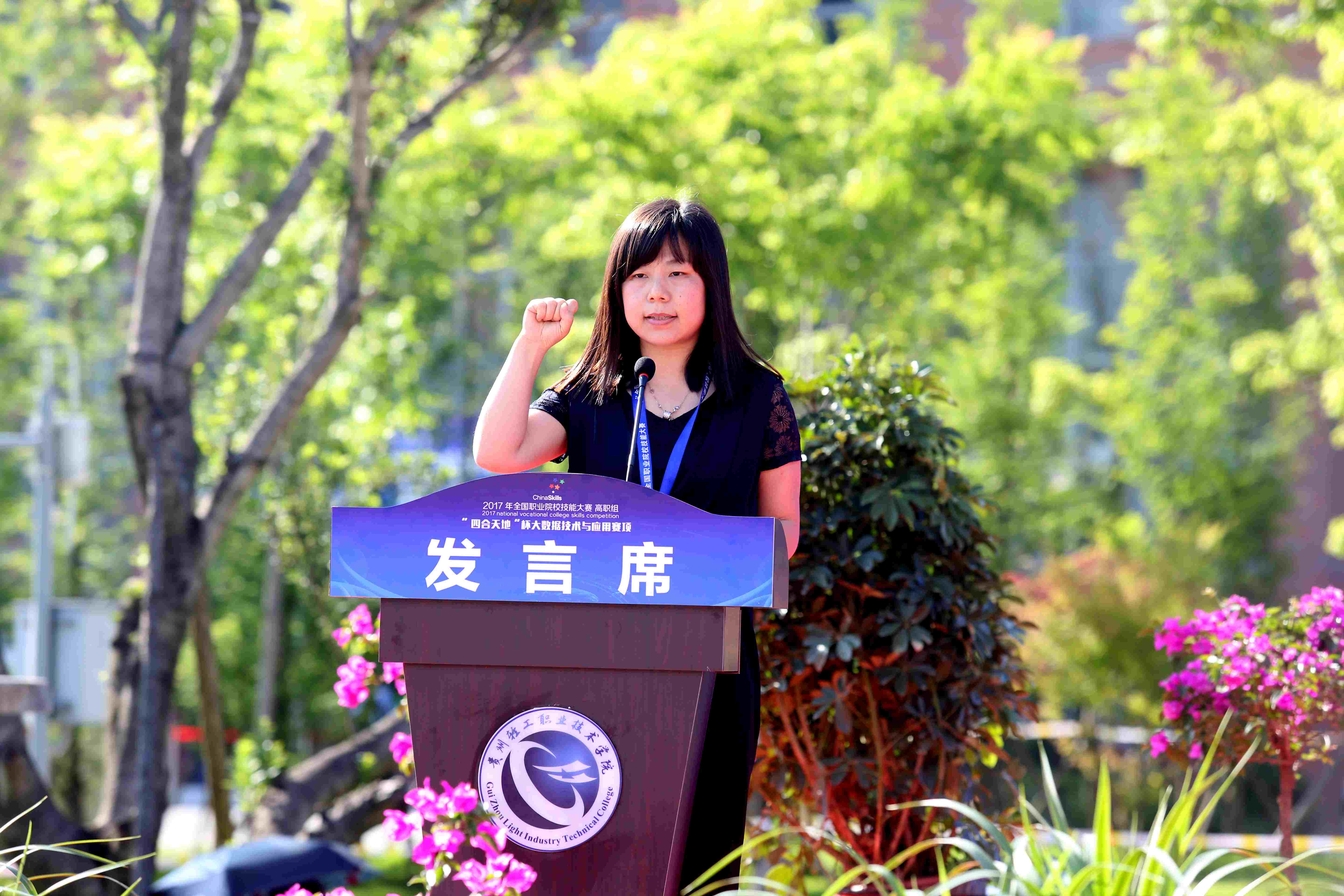 周为副司长讲话。她代表全国大赛组委会对大赛举行表示祝贺,对所有参赛同学和指导教师致以诚挚问候,对比赛筹备中付出辛勤劳动的同志、贵州省人民政府、北京四合天地科技有限公司的支持表示衷心感谢!她表示,全国职业院校技能大赛是我国职业教育的一项重大制度设计和创新,自2008年开始举办以来,赛事体系和办赛机制逐步扩大完善,促进了职业教育产业融合、校企合作,引领了专业建设和教学改革,推动了区域职业教育协调发展,展现了职业教育改革创新成果,搭建了职业教育与产业之间多元合作的平台,成为中国特色职业教育品牌。她强调,大赛发展离不开党和国家领导人的重视与指导,李克强总理与刘延东副总理等中央领导的批示和要求是对职业教育战线全体同仁的最大鼓励,要认真学习贯彻,切实把党中央、国务院的决策部署落到实处。她指出,大赛按照“提高质量、完善制度、阳光操作、创新发展”的总体办赛思路,国际化水平不断提升,希望大家恪尽职守,展现风采,办出一届“精彩、专业、安全、廉洁”的大赛,为党的十九大献礼。