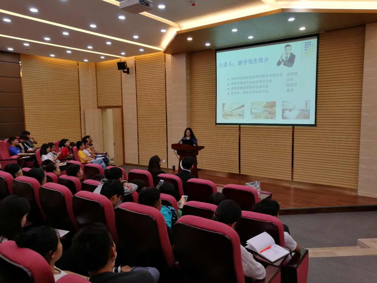 讲座中,游宇先生从服务的核心是什么、什么是服务、如何认识服务等方面讲解了作为服务行业的人员该具备的素质。他列举了实际工作中的很多例子来说这些问题,也让同学们发表自己的意见或者谈谈自己的想法。他还让学生观看了一些小视频,其中一个叫“最美酒店人”有一个小视频,让在场观众都记忆深刻,激发了现场酒店专业同学对本专业的向往和热爱。