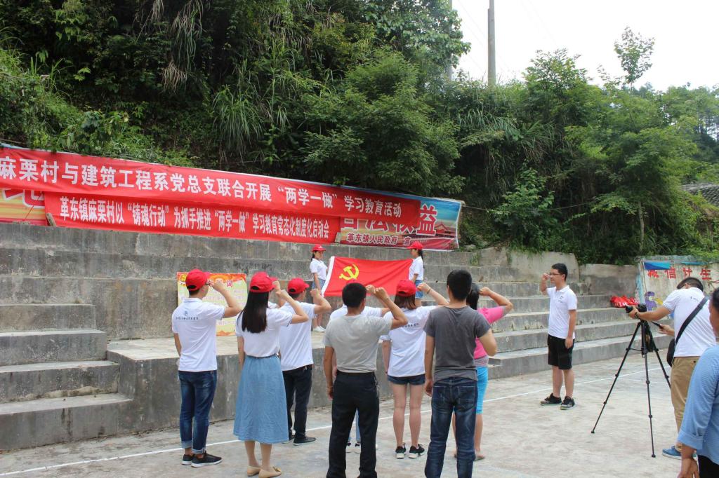 为庆祝建党96周年,7月6日上午,革东镇麻栗村党支部与建筑工程系党总支,在麻栗村村委,联合开展 “迎七一重温入党誓词”活动。