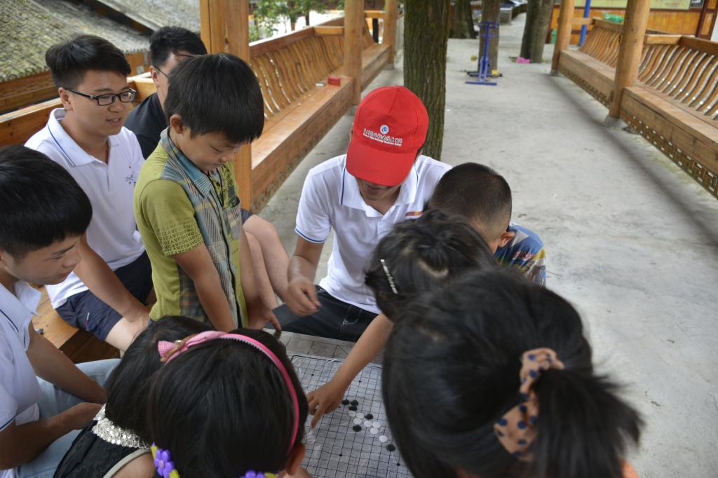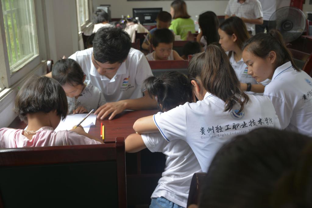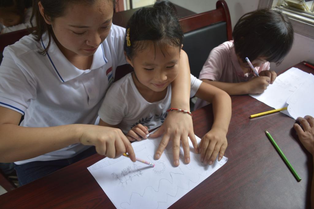 活动中,志愿者们首先通过教孩子们绘画、折纸、做游戏,和孩子们拉近关系;其次,通过聊天来了解他们的一些心理健康问题,用爱心解开留守儿童的心结,并间接地去纠正和引导他们。