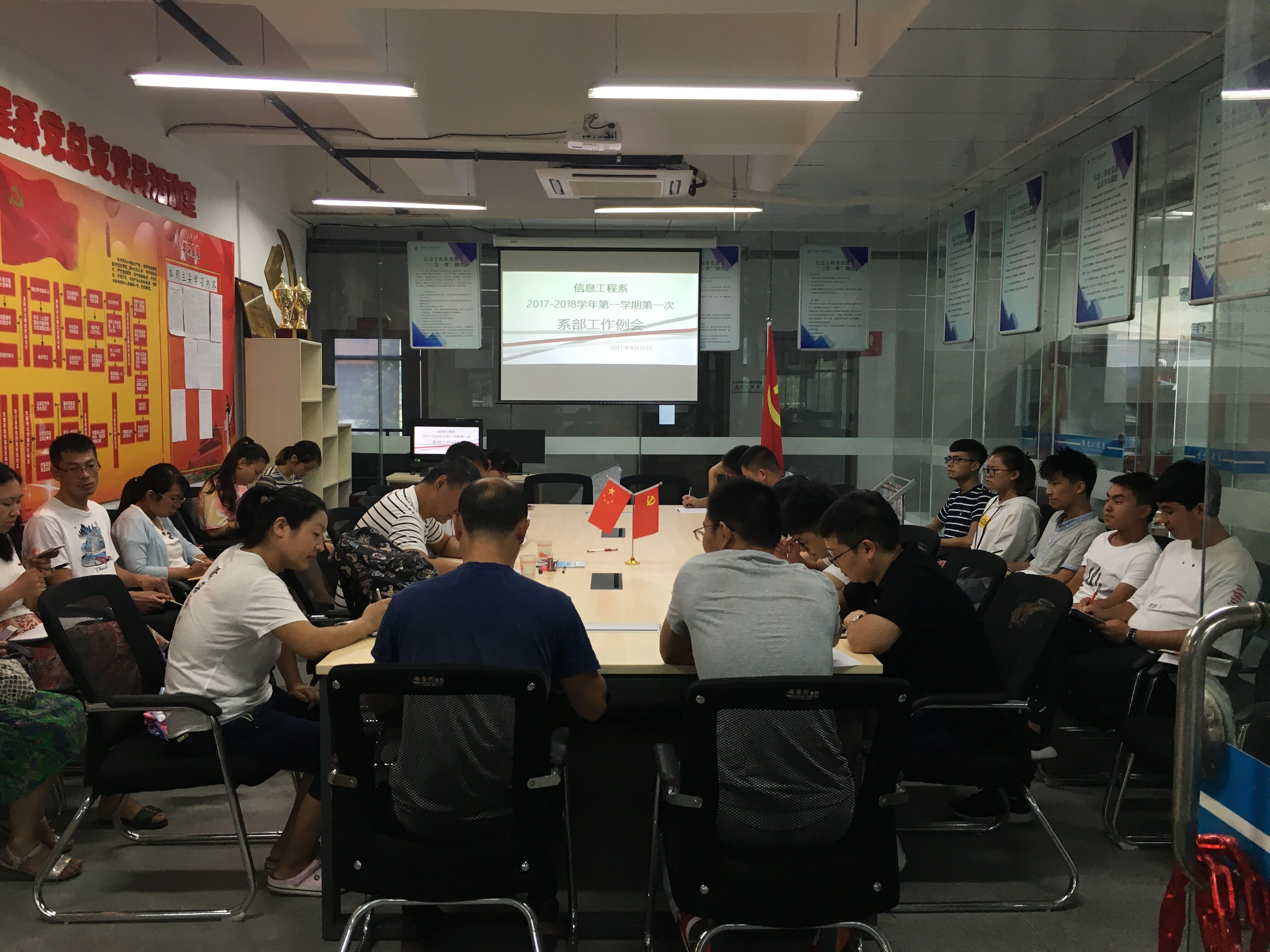 8月26日,学院副院长徐兆伯同志到信息工程系安排新学期工作,会议由系党总支副书记张庚斐(主持工作)主持,信息工程系全体教职员工参加会议。