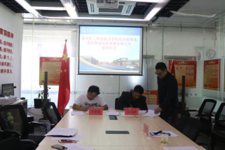 最后,由经济管理系主任李德建与贵阳聚盟科技发展有限公司运营总监Khailash共同签订了合作协议。