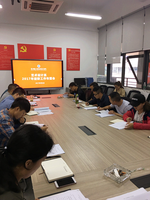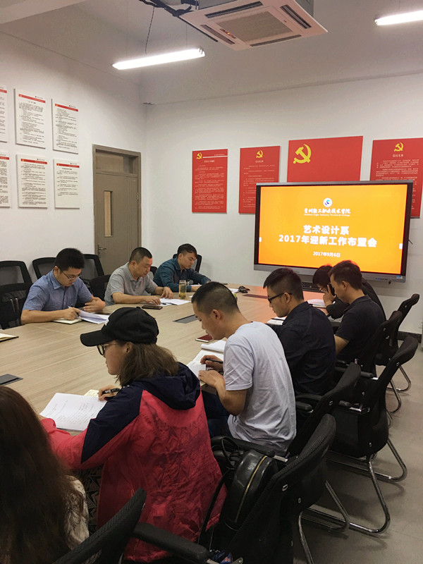 为迎接即将到来2017年新生报到相关工作,2017年9月6日上午10点20分,艺术设计系相关工作人员在在系部会议室召开迎新工作布置会,会议由艺术设计系黄振宇主任主持。