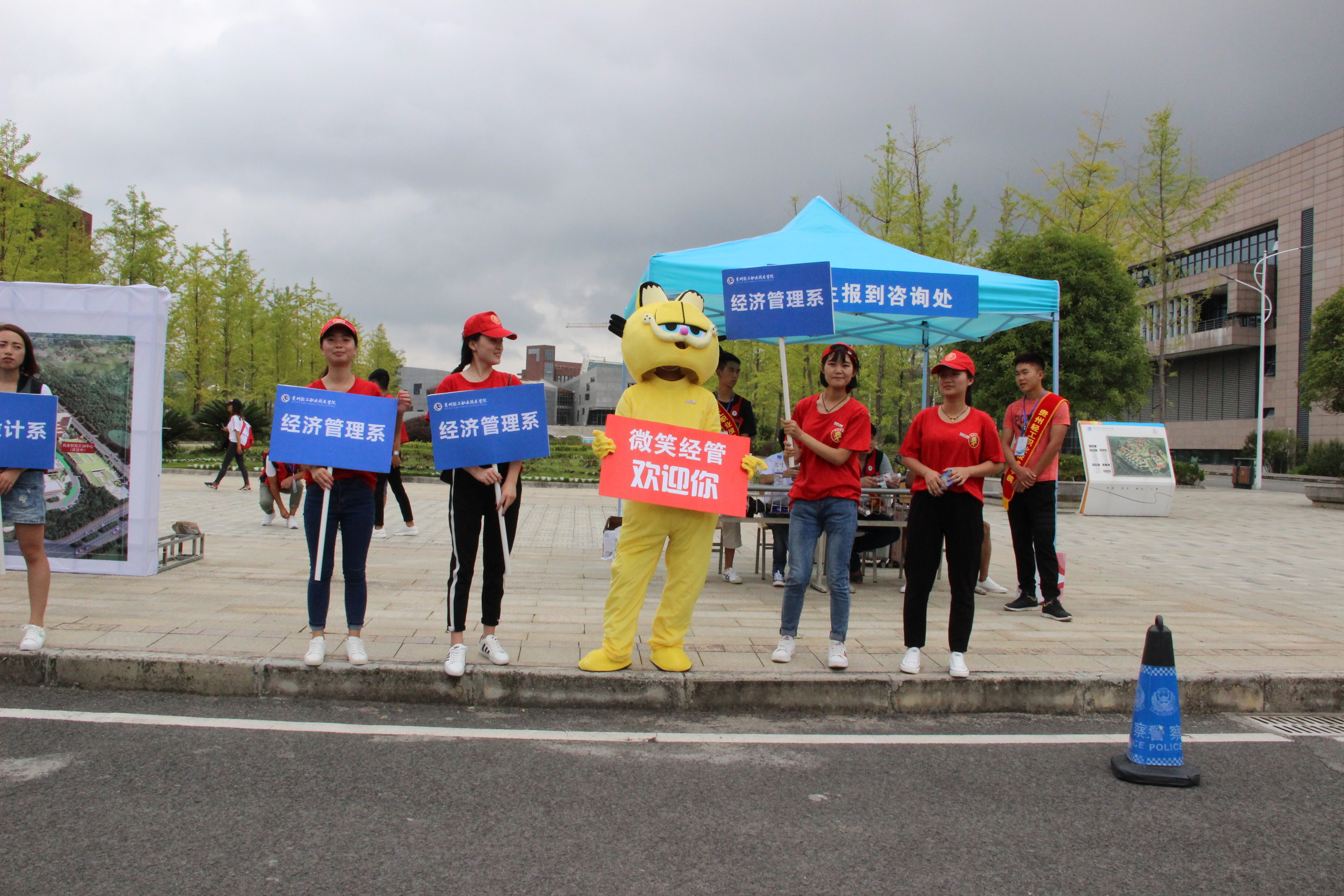 另外为营造良好氛围,学院为每个系准备迎新人偶,我系人偶加菲猫在迎新过程中颇受师生家长的欢迎,纷纷与之合影留念。我系又别出心裁的设置了“我在轻院的第一个朋友圈”,开启在轻院在经管的精彩人生。同时还设有经济管理系简介、班主任名片、系徽、分班表、班主任辅导员风采展、学生会活动展板、专升本名单展板、实训室开放日活动等宣传形式,直接有效的向广大新生和家长展示了经济管理系的风采和人才培养的硕果。