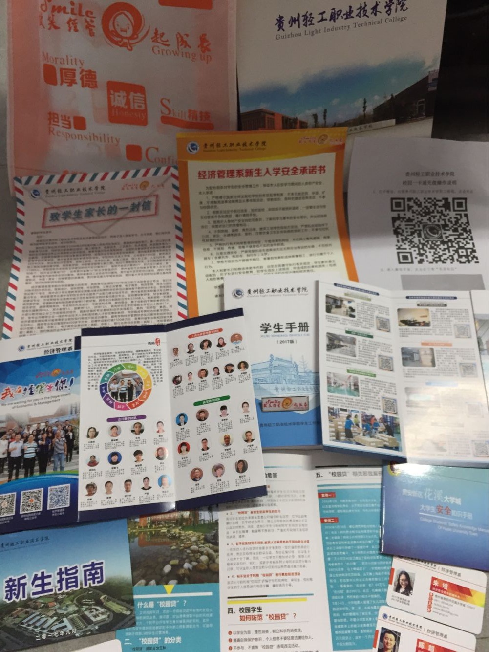 今年迎新首次使用钉钉系统报到,迎新前的各项培训工作使大家各司其职、通力合作、有效开展工作,熟练地为每位新生办理报到手续、发放发卡、钥匙和装有新生指南、学生手册、致家长的一封信、安全承诺书及我在经管等你折页 、“贵州现代物流开放实训基地”宣传折页等资料。