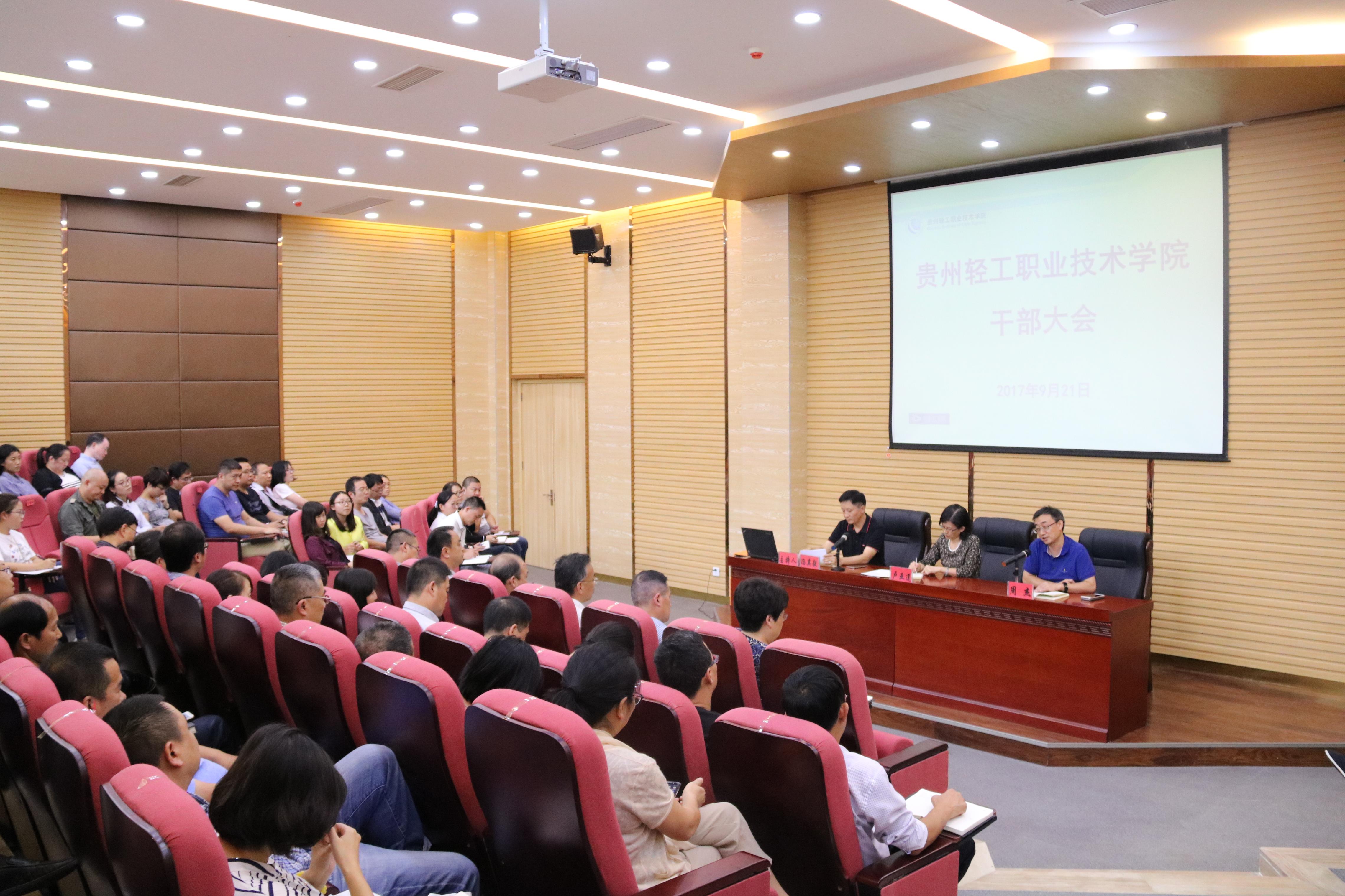 学院党委副书记冯其毅宣读了《中共贵州轻工职业技术学院委员会关于调整学院内设机构的通知》、《关于学院党政领导班子成员分工调整的通知》、《关于孟永国等同志任免职的通知》等文件。