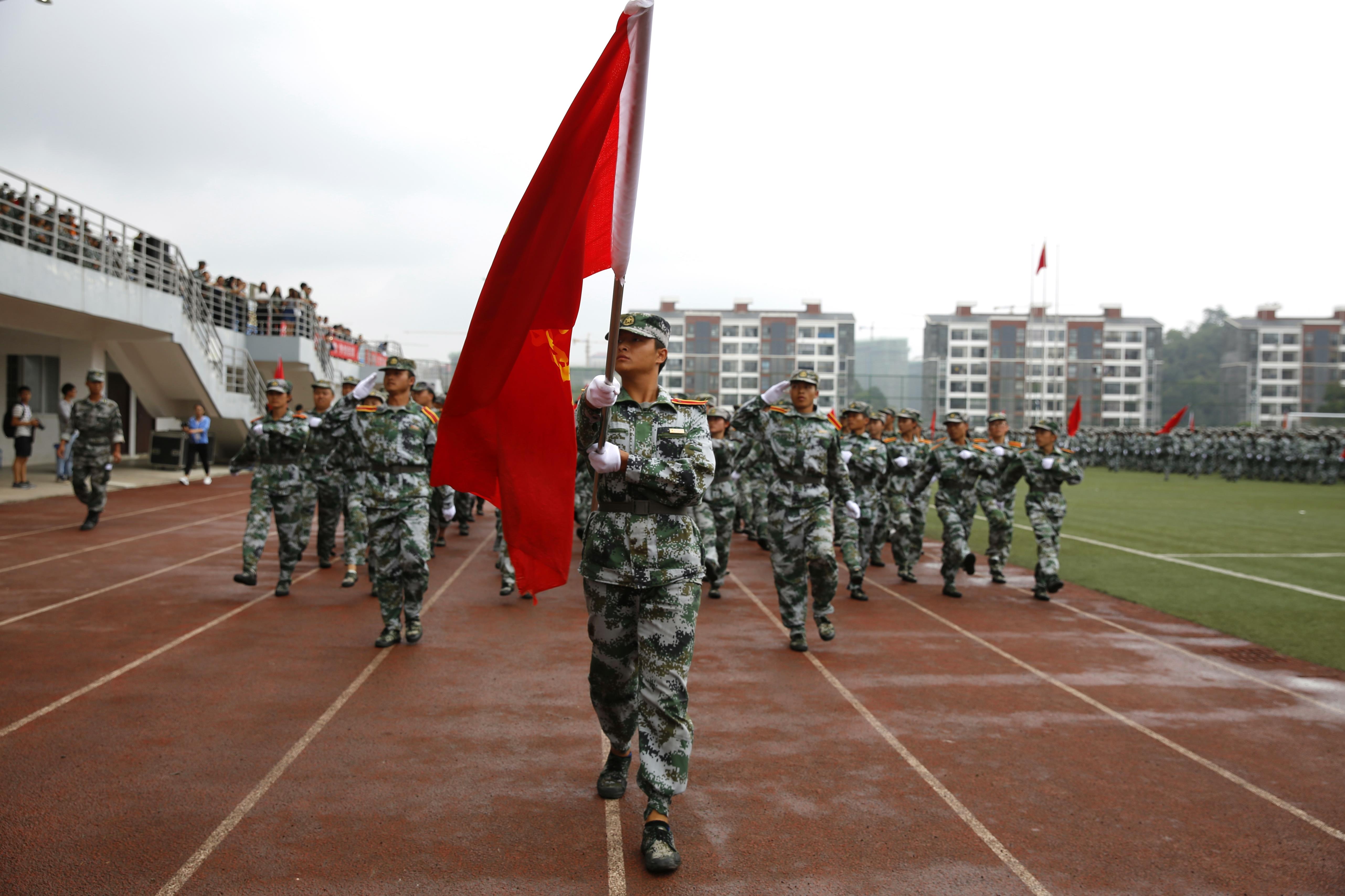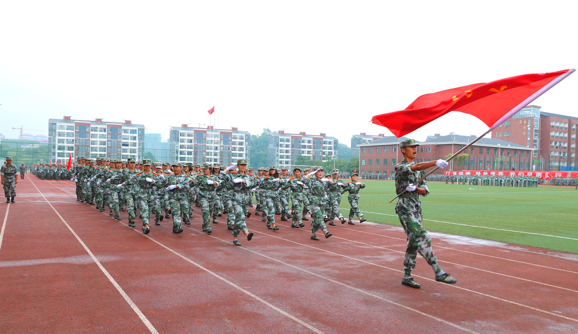 大会在庄严的国歌声中拉开帷幕。院长周杰在军训团团长、武警军乐团政委吴运发,军训团政委、院党委副书记杜平的陪同下检阅新生军训队伍。