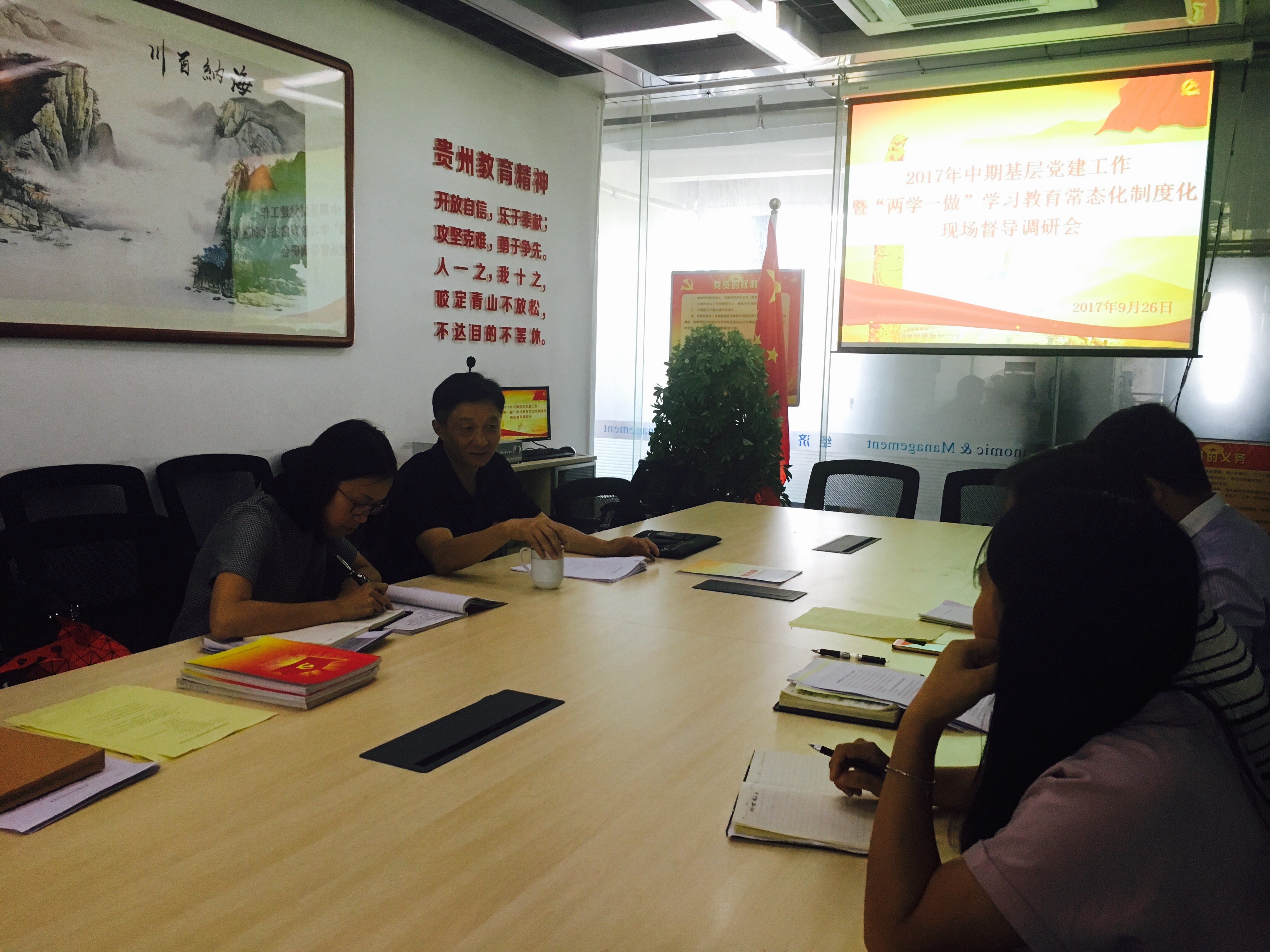 为了扎实推进“两学一做”学习教育常态化制度化,9月26日下午,学院党委副书记冯其毅赴经济管理系开展了2017年中期基层党建工作暨“两学一做”学习教育常态化制度化现场督导调研工作,随行的有学院组织部部长林茜及工作人员李林,系部总支书记杨阳、副书记梁鹏飞及各支部委员参加了会议。