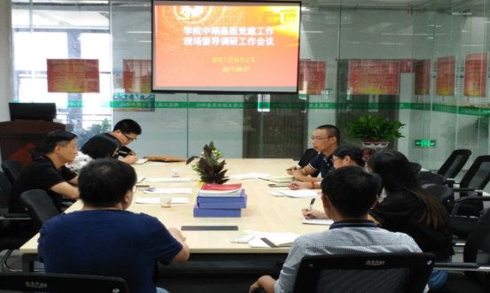 2017年9月27日下午,学院党委副书记冯其毅、组织部部长林茜率队赴建筑工程系开展2017年中期基层党建工作暨“两学一做”学习教育常态化制度化现场督导调研,建筑工程系党总支书记李五祥、副主任唐芳柱、党总支副书记葛坤、教工支部书记李世海、学生支部书记欧凤娟等参加了现场督导调研工作会议。