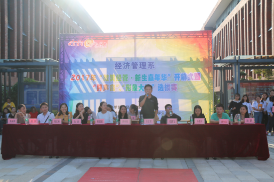 为丰富大学校园生活,彰显当代学子青春风采,促进学生综合素质提升,展示新一代大学生的综合文化素养和良好的公众形象。9月29日下午,经济管理系团总支在经管系平台举办了2017年“微笑经管•新生嘉年华”开幕式暨“好声音”、“形象大使”选拔赛。经济管理系副主任吕志君老师、经济管理系党总支副书记梁鹏飞老师、办公室主任杨麒伊老师、团总支书记黄章琼老师、学生管理科负责人程媛媛老师、辅导员朱培老师、袁焱萍老师,周红梅老师、余庆老师,实训教学科唐少永老师、陈群老师,系部行政助理、工作人员及参赛选手共200余人参加了此次活动。活动由2017级新生薛孟琪、邓古董主持。