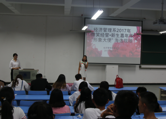 选拔赛共分为两个赛场,好声音比赛在经管系平台举行,形象大使比赛在3106教室举行,比赛开始前,由礼仪部和文艺部的同学带来了走秀和独唱,给2017级新生做了很好的示范。比赛开始,每位选手轮番上阵各自以自己最完美的状态展示给观众及评委,赢得了阵阵掌声,气氛空前浓厚,选手做到了与观众的完美互动,拉近了距离感。新生略显羞涩的表现也被观众给予了鼓励的掌声。