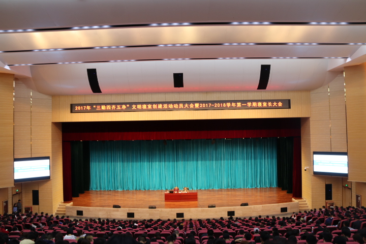 10月19晚,学生处组织学院全体学生寝室长、大学生自律委员会、学生公寓社区管理委员全体成员在学院礼堂召开2017年“三勤四齐五净”文明寝室创建活动动员大会暨2017—2018学年第一学期寝室长大会。此次大会由学生处杨义老师主持,学生处处长兼团委书记暨星球出席活动并做动员讲话,参加活动的还有学生处全体工作人员、各系分管学生寝室的辅导员老师。