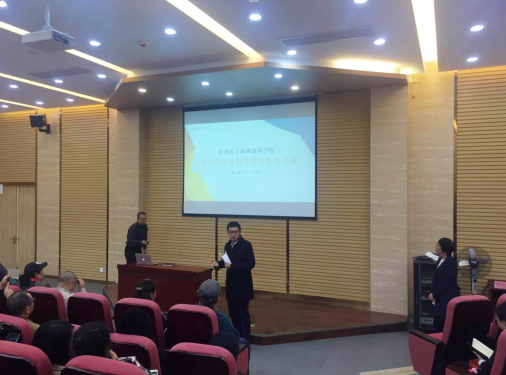 2017年10月17日,学院人事处(教师工作处)联合教务处、现教中心共同举办教师信息化教学能力提升培训,旨在提高学校老师对信息化的整体认识,以及全面系统的运用方法。引导老师们参与到移动教学的实际应用中来,了解并探索信息化教学方法,加入教学改革的行列,为提高教学质量注入新的动力。由人事处(教师工作处)处长王珂佳主持,2016年全国信息化教学大赛国赛一等奖获得者于丽、超星集团副总经理尚景伟为老师们进行培训讲解。