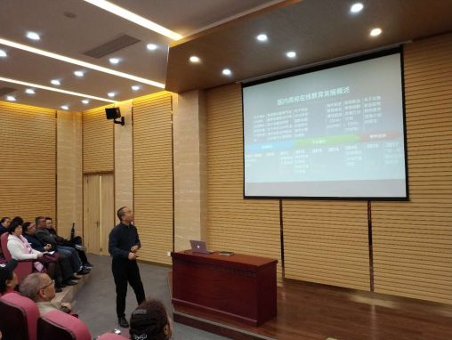 培训中,超星集团副总经理尚景伟首先为老师们讲解国内高校在线教育的发展现状,同时分享了在线开放课程的知识单元化、富媒体化、学习行为管理等特征,生动的讲述了在线开放课程的课程设计内容及流程,最后根据多个实际案例,跟老师们一起探讨了“移动+教育意味着什么”这一课题,丰富的实例和创新性的论点,吸引着老师不断点头赞同并纷纷拿起手机拍照,留住对自己有启发的知识点。