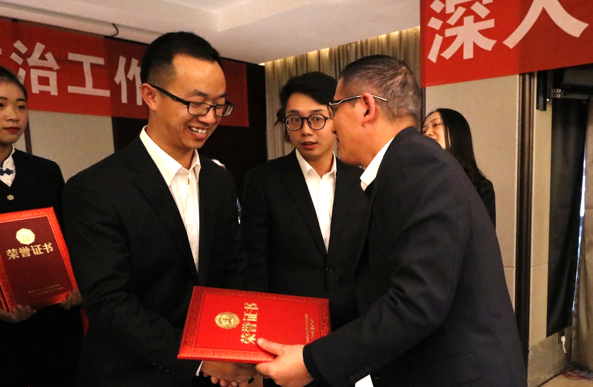 会议在全体奏唱国歌中拉开帷幕。党委副书记杜平同志作《中共贵州轻工职业技术学院委员会关于加强和改进新形势下思想政治工作的实施意见》起草说明;学院领导分别为学院2017年宣传工作先进个人和先进集体、思想政治工作先进个人和先进集体颁奖;学院党委书记卢亚莲为学院思想政治教育教学基地、思政教育教学实践基地授牌;思政教师代表王征宇、学生处(团委)处长暨星球就思想政治教育工作及思想政治工作体系建设先后上台交流发言;建筑工程系党总支书记李五祥就“一系一品”文化建设进行经验分享。