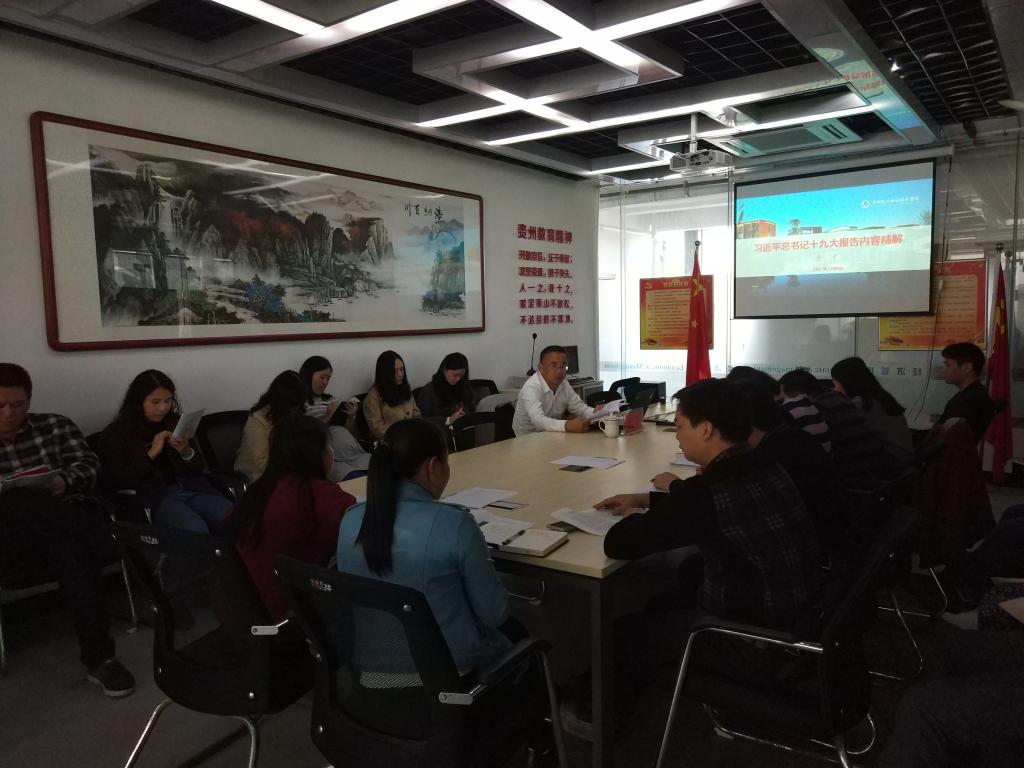 杜平副书记首先传达了《中共贵州省委教育工委 中共贵州省教育厅党组关于认真学习宣传贯彻党的十九大精神和习近平总书记在参加贵州代表团讨论时重要讲话精神的通知》。