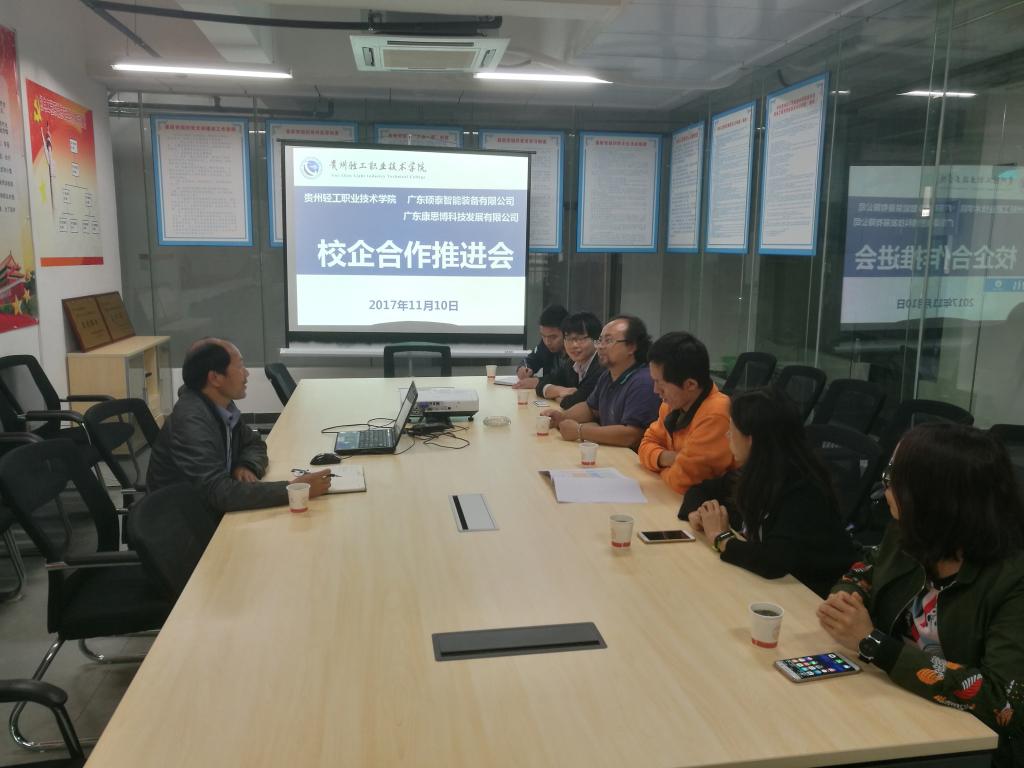 为进一步深化校企合作,提高人才培养质量,扩宽学生就业市场,11月10日,机电工程系与广东硕泰智能装备有限公司、广东康思博科技发展有限公司召开校企合作工作推进会。广东硕泰智能装备有限公司副总裁钟永材、广东康思博科技发展有限公司行政部主管黄琼秀一行参加会议。会议由机电工程系主任王国安主持。
