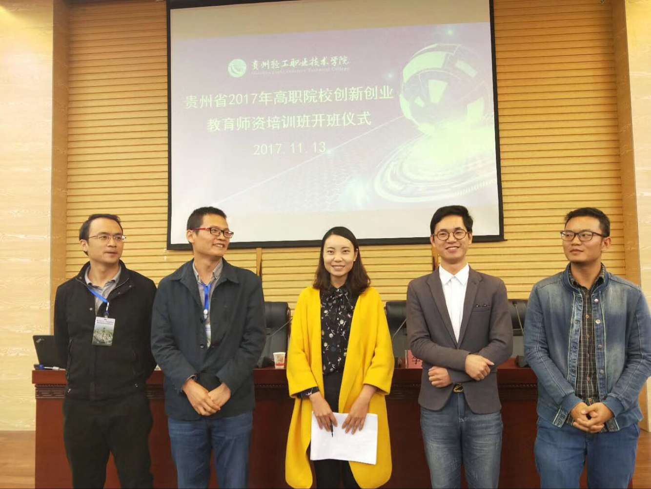 11月13日上午9:00,由贵州省教育厅主办,我院承办的贵州省2017年高职院校创新创业教育师资培训班在我院知行堂学生事务中心一号报告厅举行开班仪式。我院院长周杰、贵安新区花溪大学城管委会经济发展部部长李悲鸿、我院党委副书记杜平、子谦国际创业学院贵州分院负责人王继培、新道科技股份有限公司贵阳分公司副总经理吴小桓出席开班仪式,贵州省41所高职院校的60名培训学员参加,我院学生处长兼团委书记暨星球主持开班仪式。