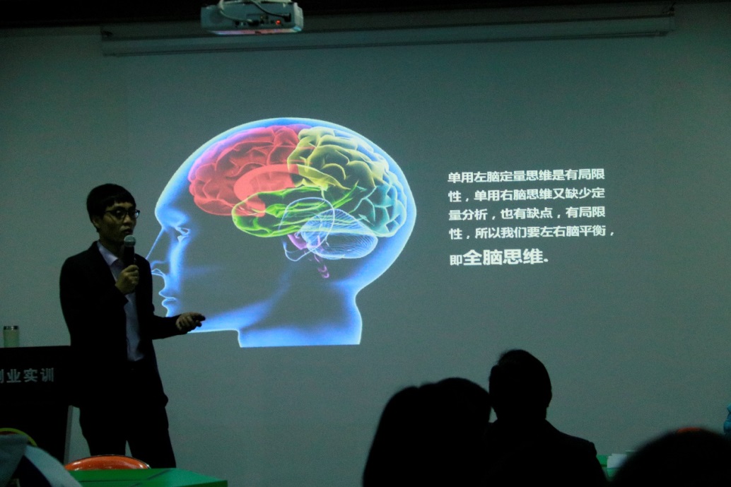 教学一开始,毛老师向老师们提出了发散思维的概念,发散思维是对问题进行关联式思考并全面展开的思维方法,训练方法是头脑风暴法,老师们在畅所欲言的气氛中,自由交换想法或点子,以此激发出创意及灵感。毛老师提到头脑风暴法要求我们的老师们不要太随大流,要经常性地进行思维训练,想出不同的观点。