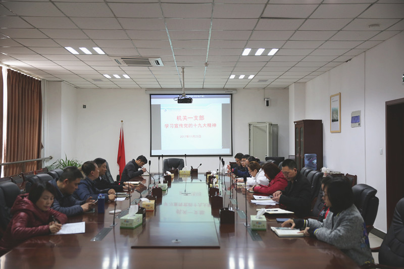 11月23日中午,机关第一党支部在行政楼第一会议室召开党员大会,深入学习党的十九大报告内容,全面准确领会党的十九大精神实质和丰富内涵,支部书记袁馨同志主持会议。