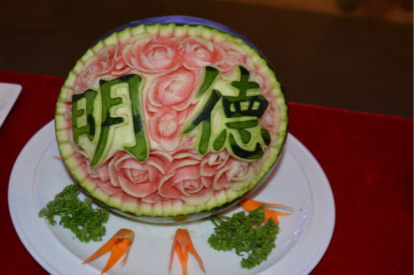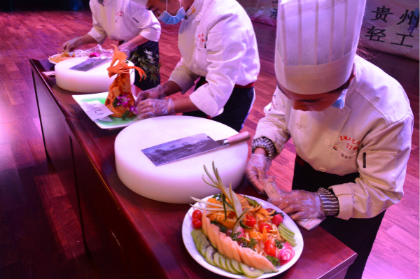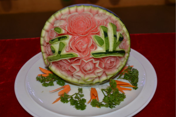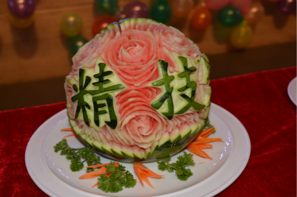 晚会中,在《食品雕刻》节目中2017级烹调工艺与营养班的同学们为全场师生展现了精湛绝伦的雕刻技艺,同学们为大家呈现的作品是用胡萝卜、南瓜、番茄、芋头等健康绿色的食材雕刻而成,也是同学们在食材上的仔细雕刻才呈现出栩栩如生、惟妙惟肖的作品。