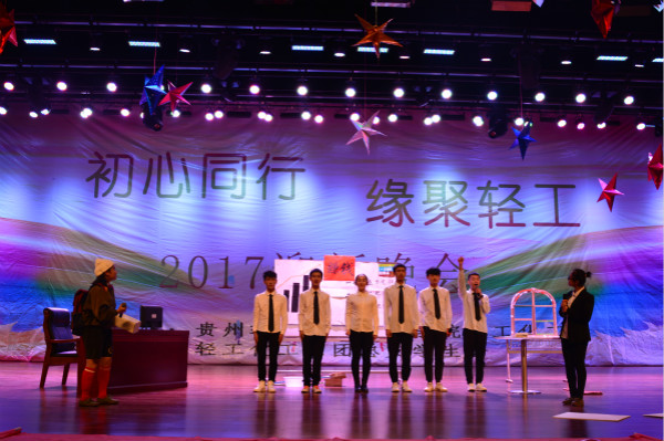 2017年11月23日,轻工化工系于学院大礼堂举办“初心同行、缘聚轻工”2017迎新晚会,轻工化工系全体师生欢聚一堂,喜迎2017级新生。莅临本次晚会的领导及嘉宾有学院保卫处处长蒋明元老师、学院学生处处长团委书记暨星球老师、艺术设计系党总支书记田景烈老师、经济管理系党总支书记杨阳老师、学院人事处处长王珂佳老师、保卫处副处长张志老师、学院实训中心副主任兼教务处副处长陈洪超老师、学院教务处副处长孙辉老师。